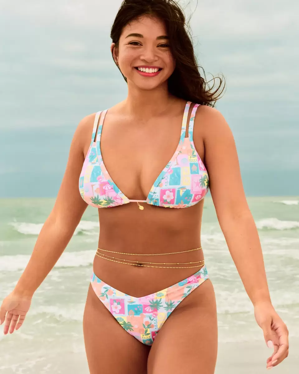 Votre nouveau haut de bikini préféré est doté de bretelles doubles, d’une fermeture à nouer dans le dos et d’un joli détail de breloque sur le devant. Rembourrage amovible et bretelles réglables. Importé.