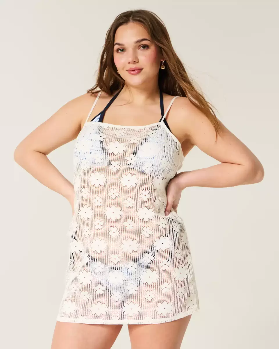 Jolie et ultra douce, cette robe cache-maillot est ornée d’une maille ajourée et d’un motif floral intégral. Dos nu, fines bretelles réglables. Importé.