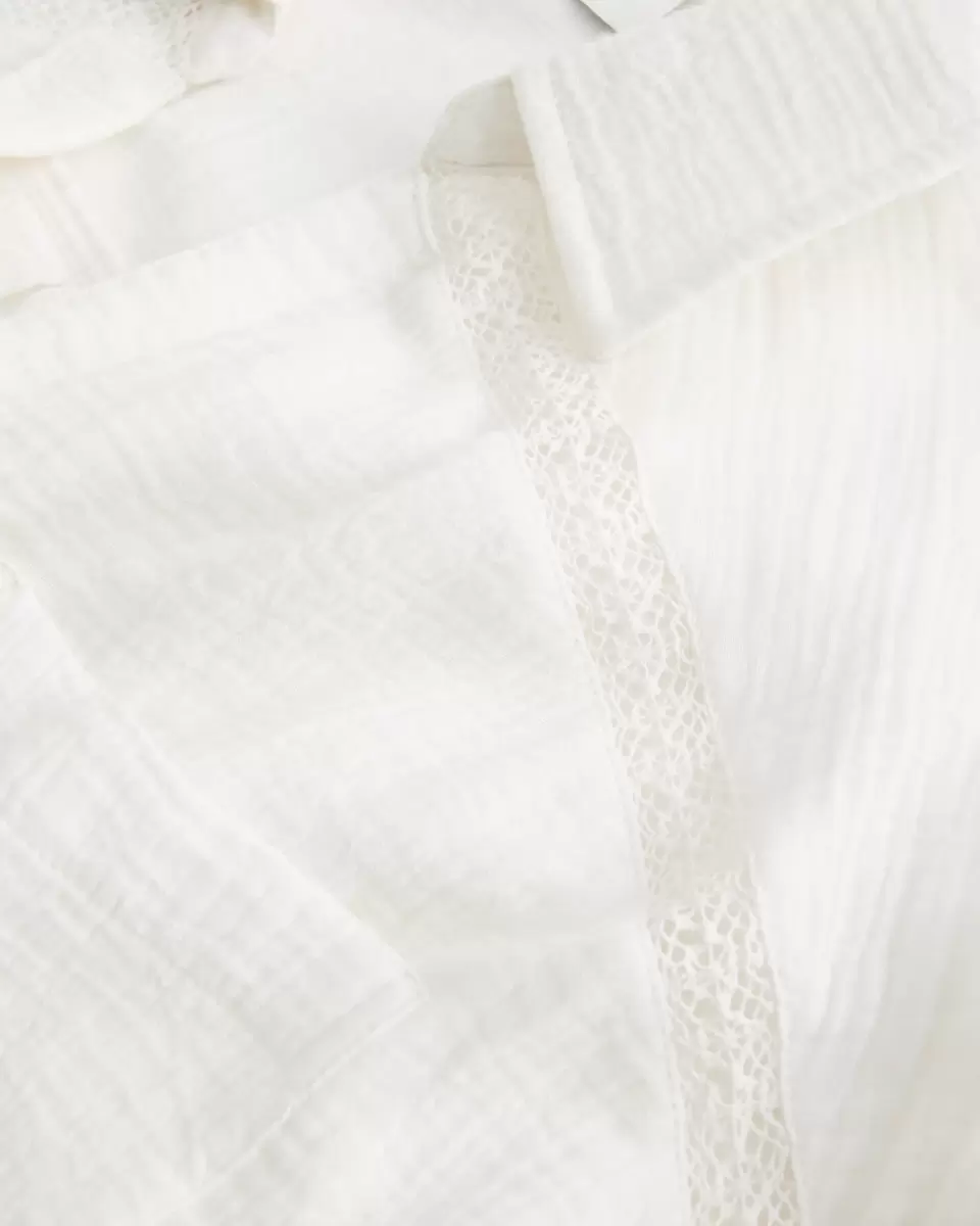 Jolie robe-chemise ultra douce en gaze texturée avec fermeture boutonnée. Poche poitrine gauche, col, manches longues et ourlet arrondi. Importé.