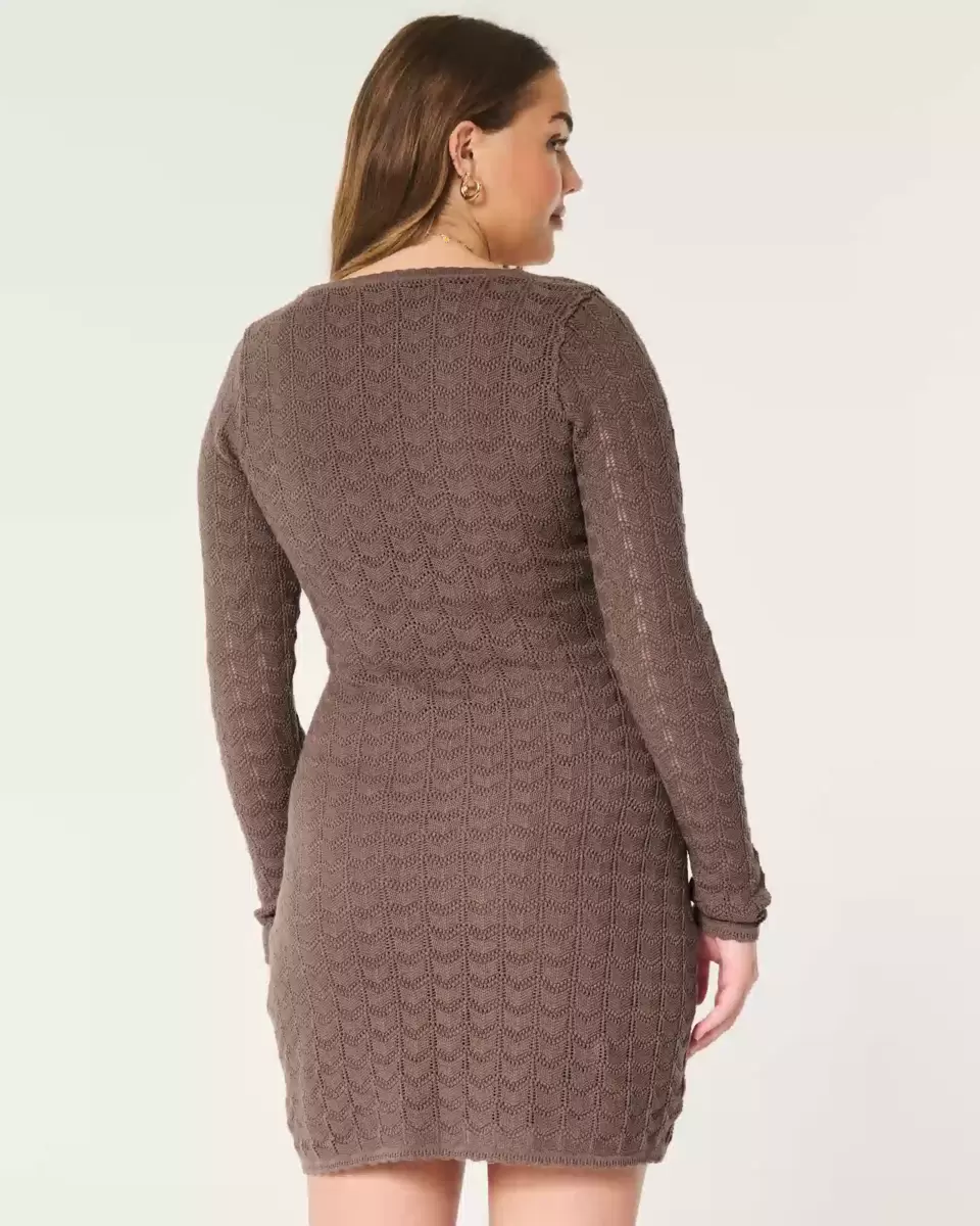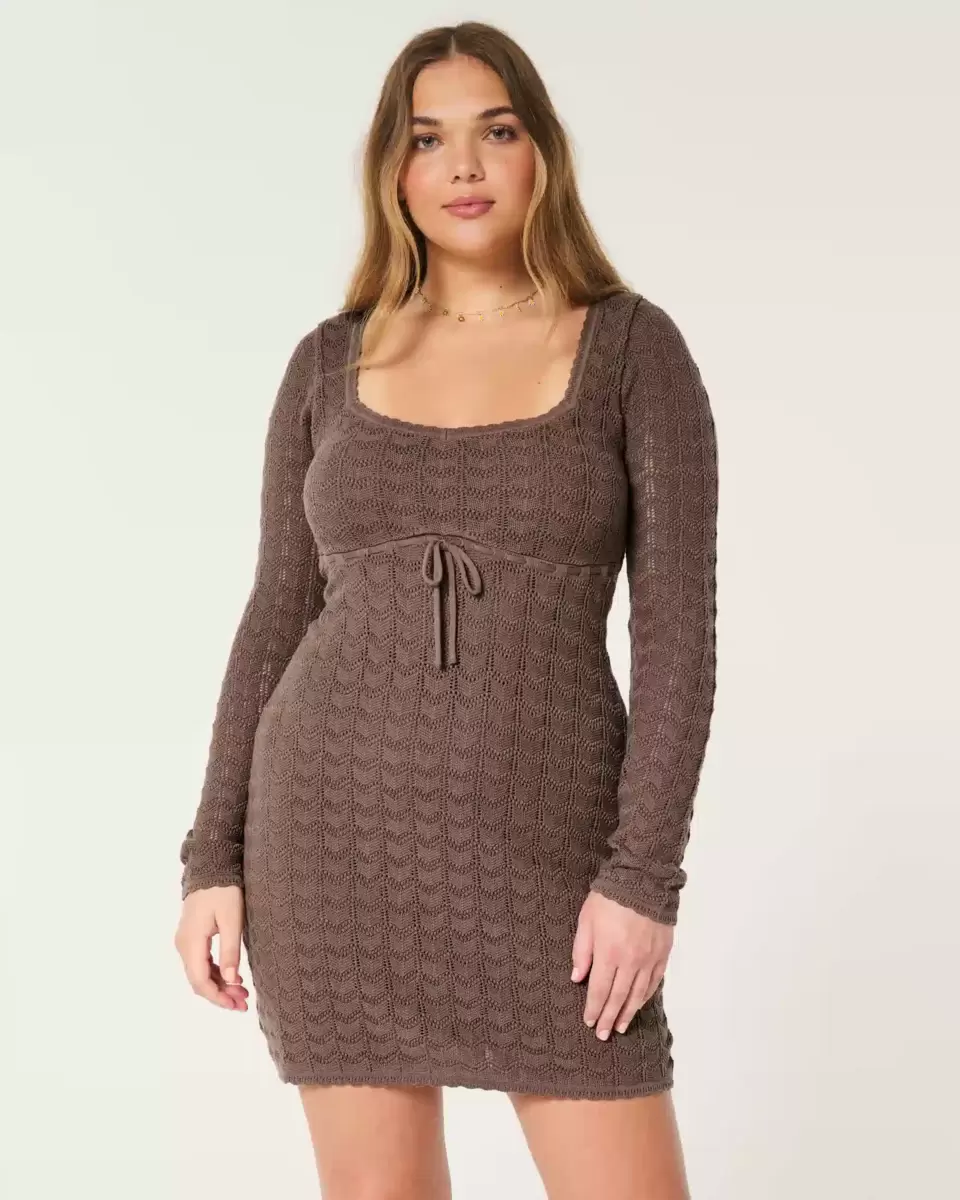 Cette jolie robe courte à manches longues est confectionnée dans un tissu crocheté ultra doux et présente une encolure festonnée. Lien à la taille. Importé.
