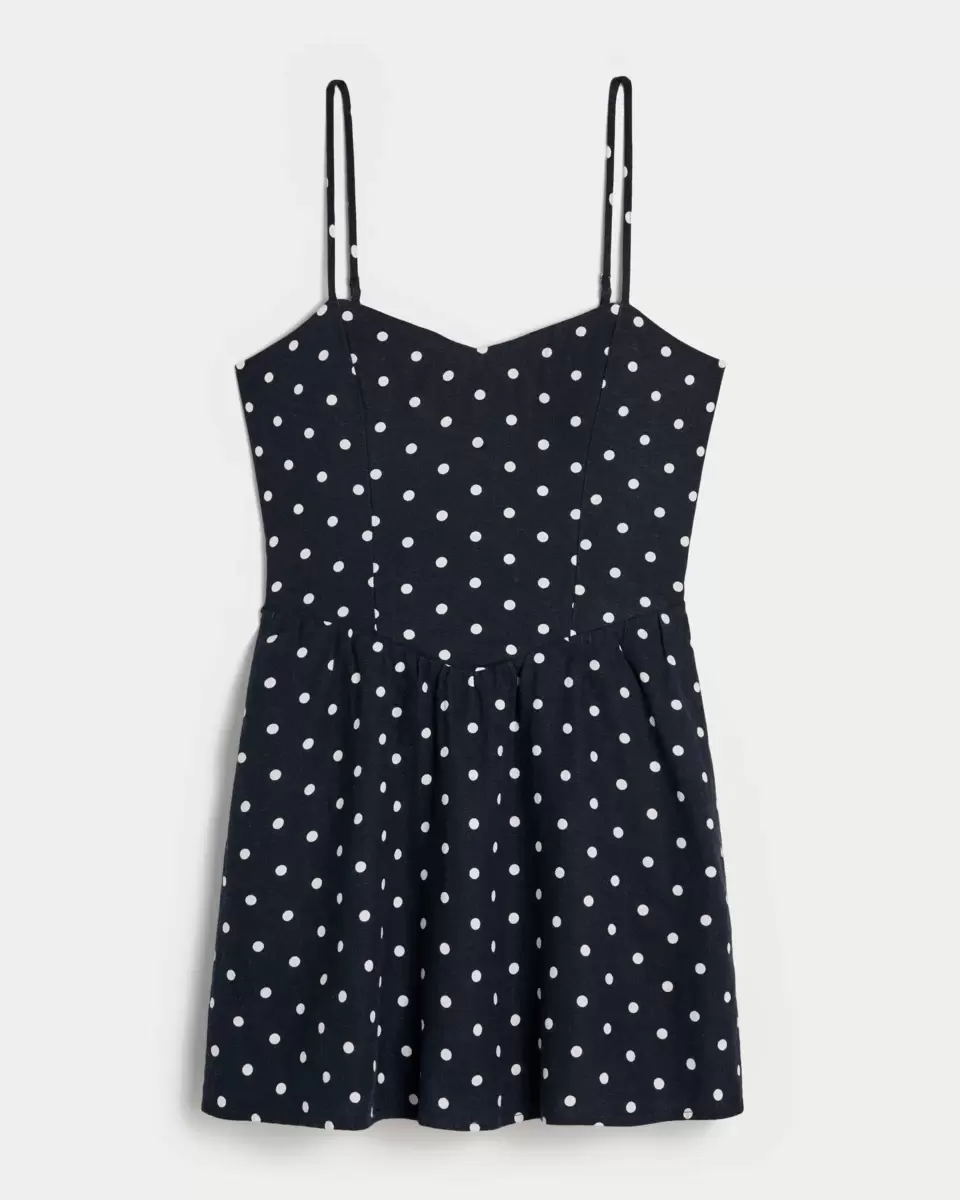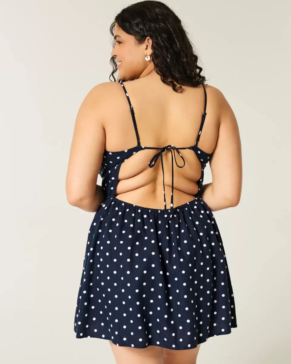 Cette mini-robe en lin mélangé, super facile et mignonne, présente un joli dos ouvert, des coussinets amovibles et un short intégré. Poches. Importé.