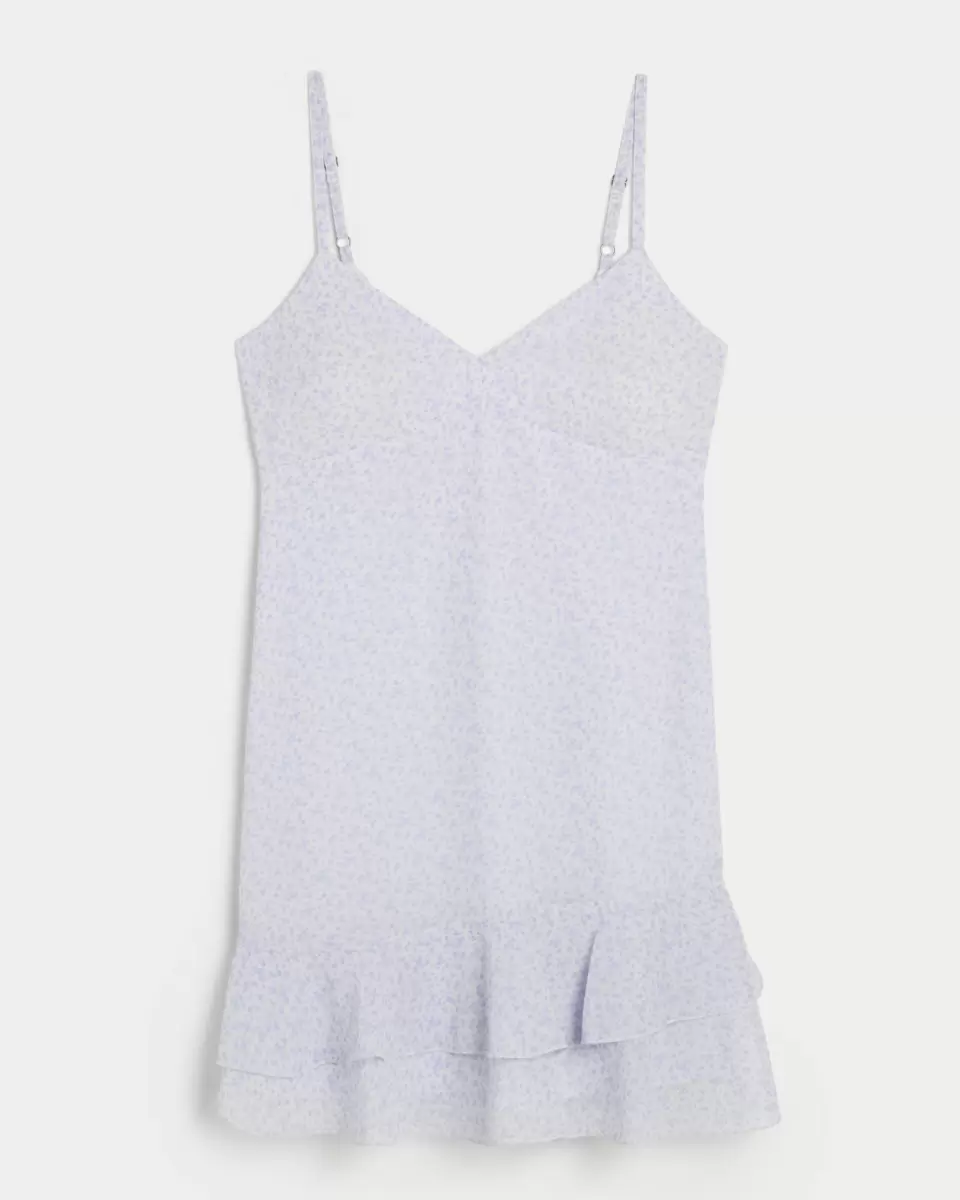 Une robe en mousseline ultra-douce et ultra-mignonne à col en V, avec un dos nu et des volants superposés. Bretelles réglables, coussinets amovibles. Importé.