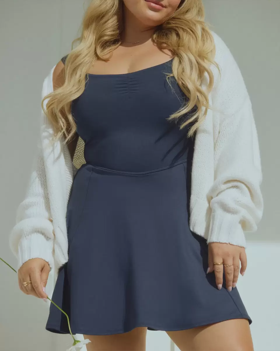 Votre nouvelle robe préférée est confectionnée dans un tissu actif ultra doux et comporte un soutien-gorge intégré avec coussinets amovibles. Un short intégré avec poche et un cordon de serrage sur le devant. Importé.