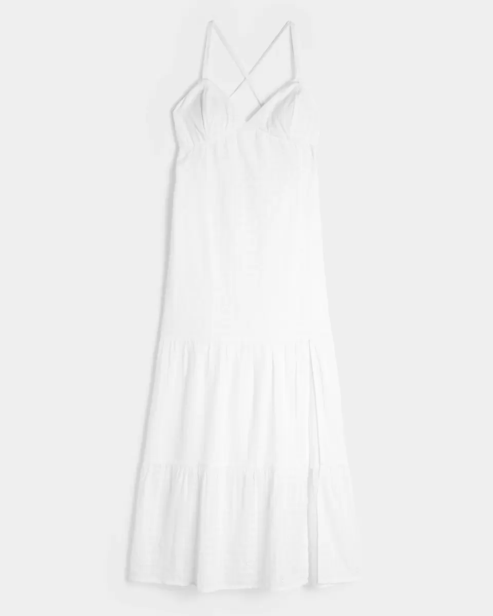 Une jolie robe longue ultra douce avec des bretelles croisées dans le dos et un dos ouvert. Ourlet fendu. Importé.