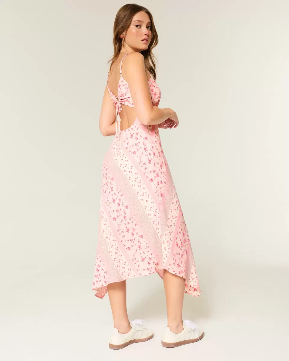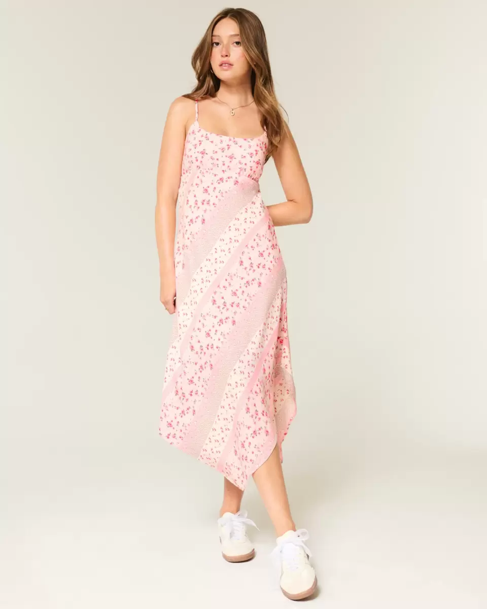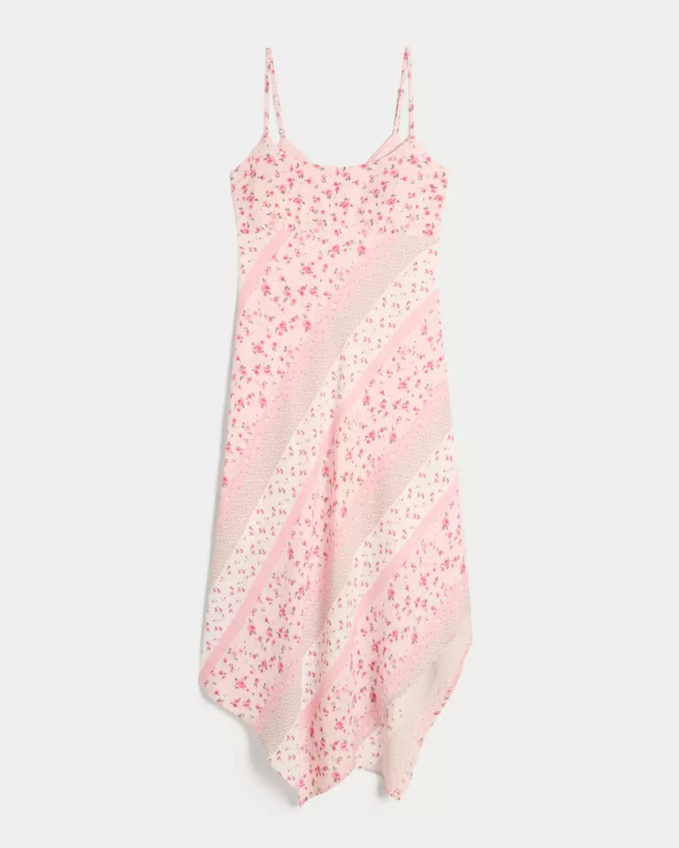 Fluide et ultra douce, cette robe mi-longue présente un ourlet asymétrique et des bretelles réglables. Importée.