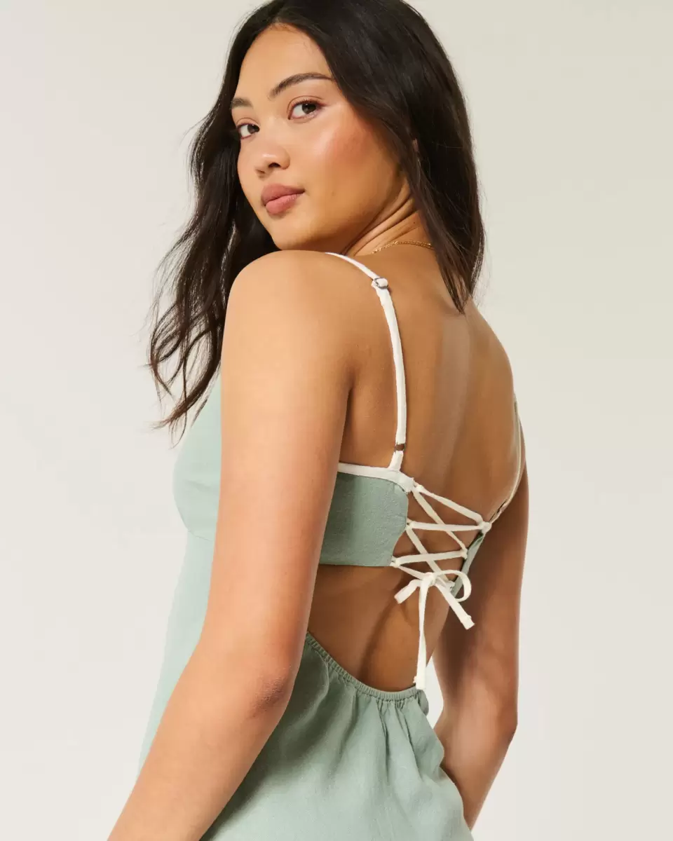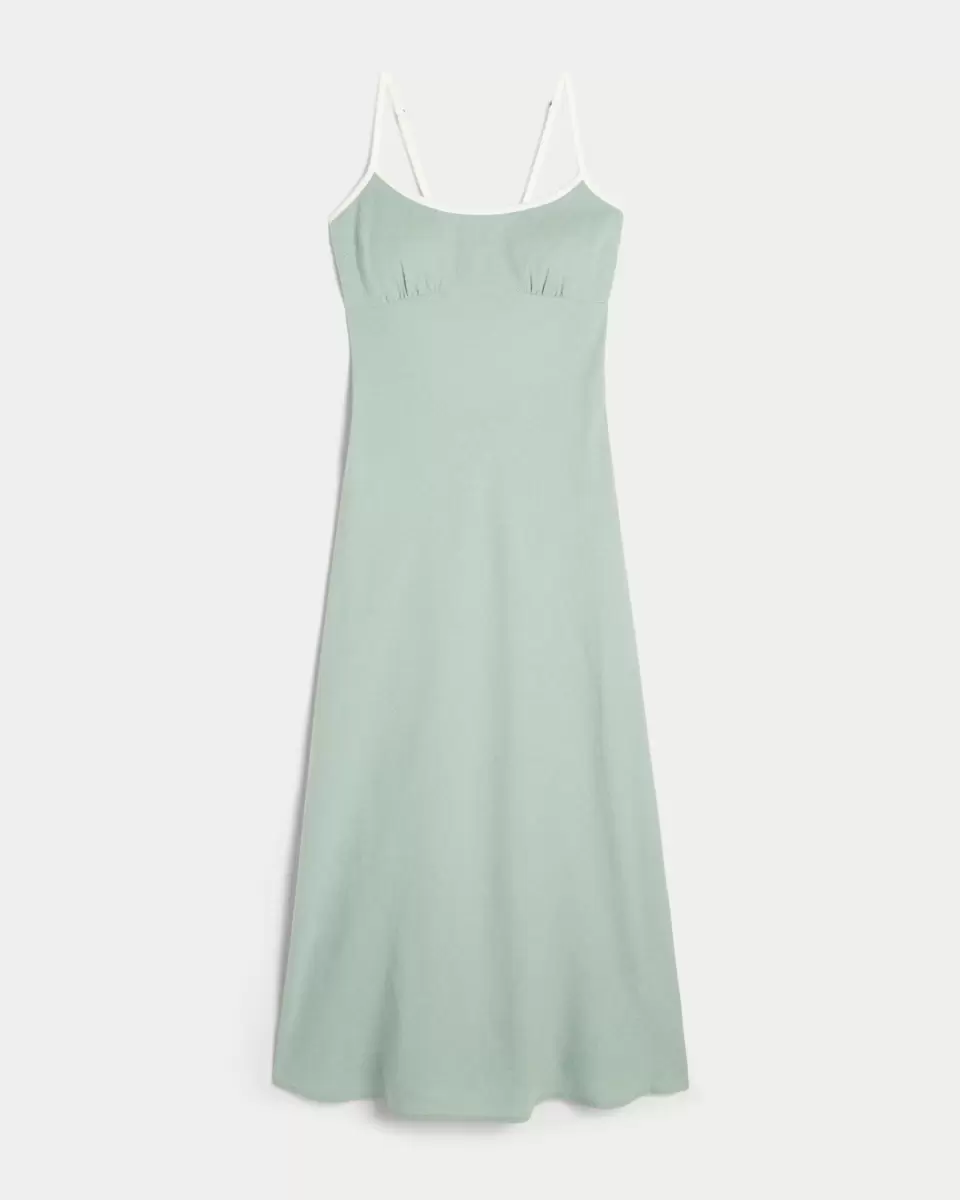 Votre nouvelle robe préférée, facile à enfiler et à emporter, est idéale pour les superpositions et présente une couture flatteuse sous la poitrine et dans le dos. Coussinets amovibles, tissu doux en lin mélangé. Importé.