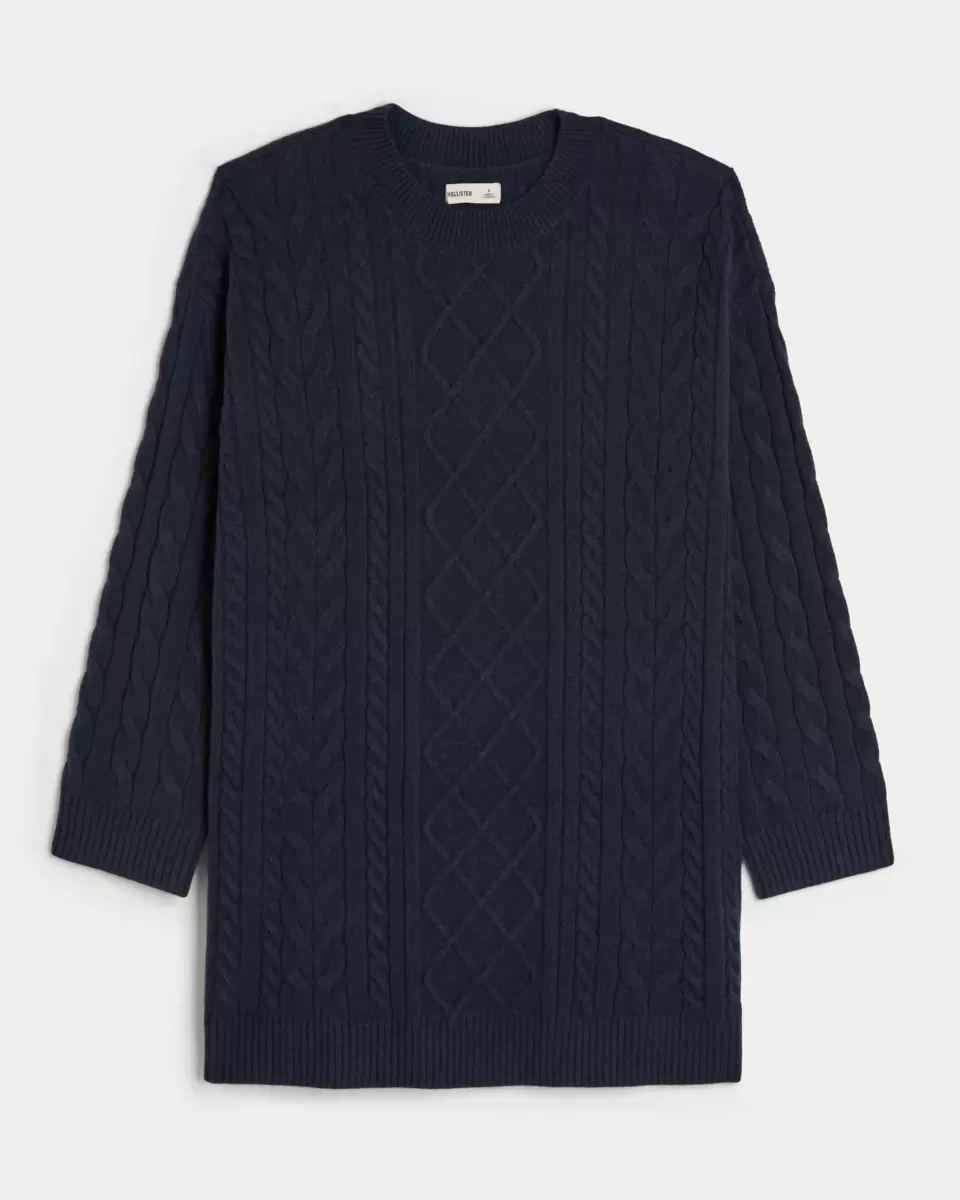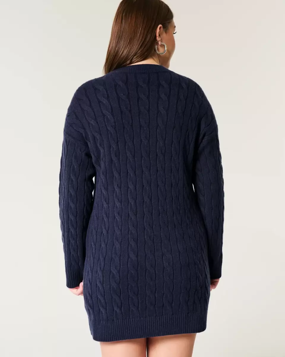 Une robe pull confortable et ultra douce avec des motifs torsadés classiques. Encolure ras du cou, manches longues, bords côtelés. Importé.