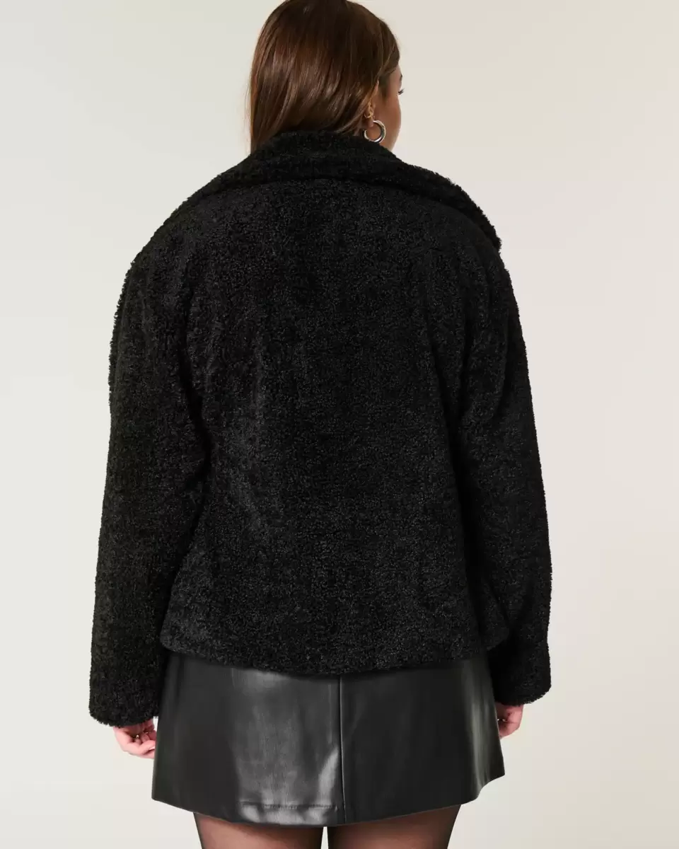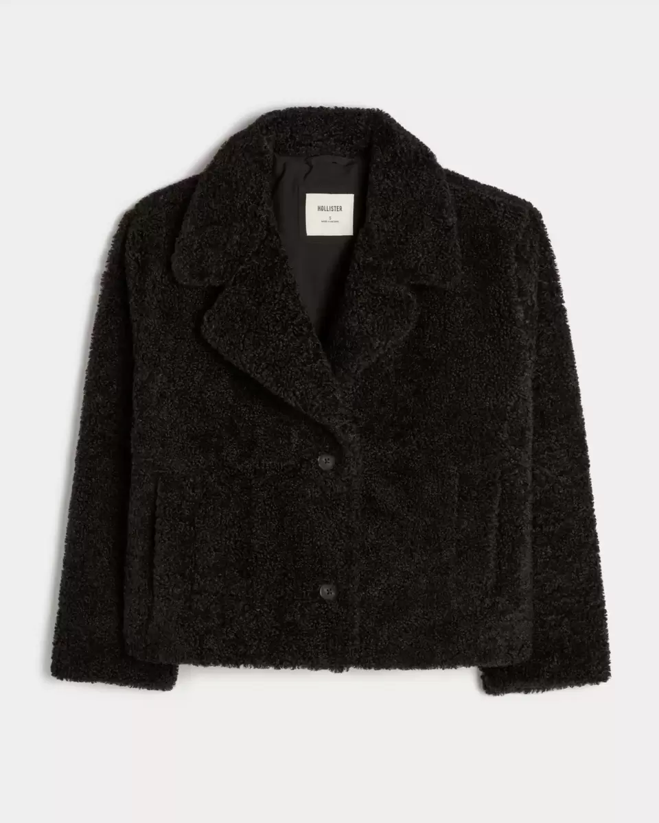 Ce caban mignon et confortable est doté d’un extérieur en sherpa ultra doux et d’une fermeture à boutons. Col, poches avant, poche intérieure, entièrement doublé. Importé.
