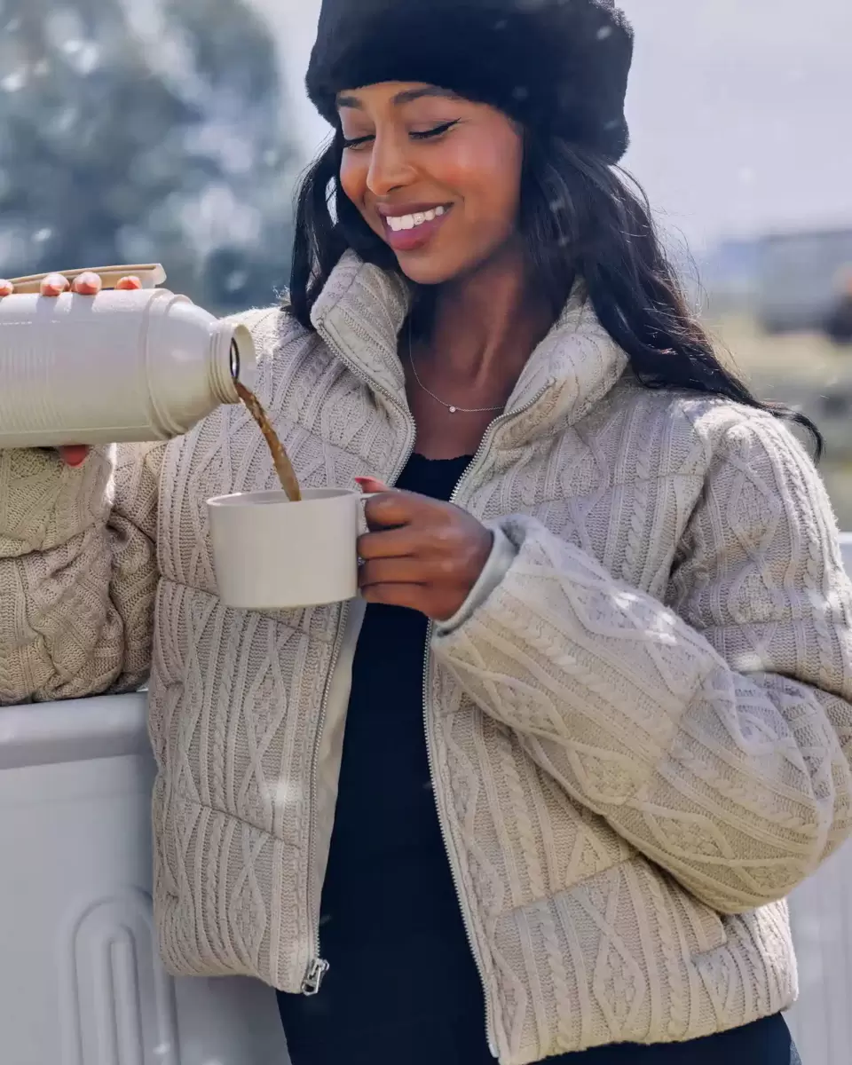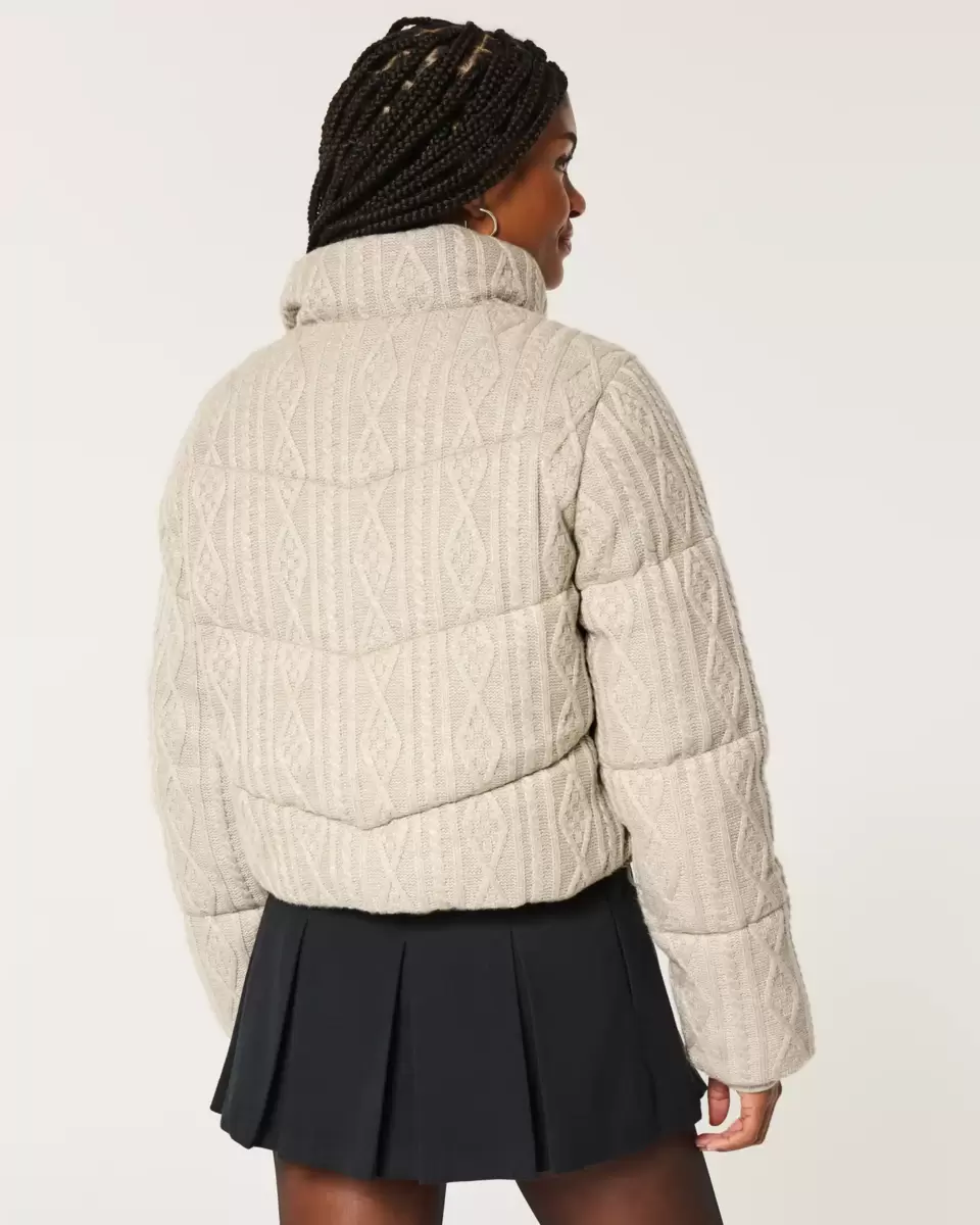 Cette mini-doudoune, mignonne et confortable, est confectionnée dans un tissu doux en maille avec des motifs torsadés et des empiècements matelassés. Elle est dotée d’une fermeture éclair intégrale, d’un col montant, de poches, d’un cordon de serrage à l’ourlet, d’une doublure intégrale et de poignets côtelés. Importé.
