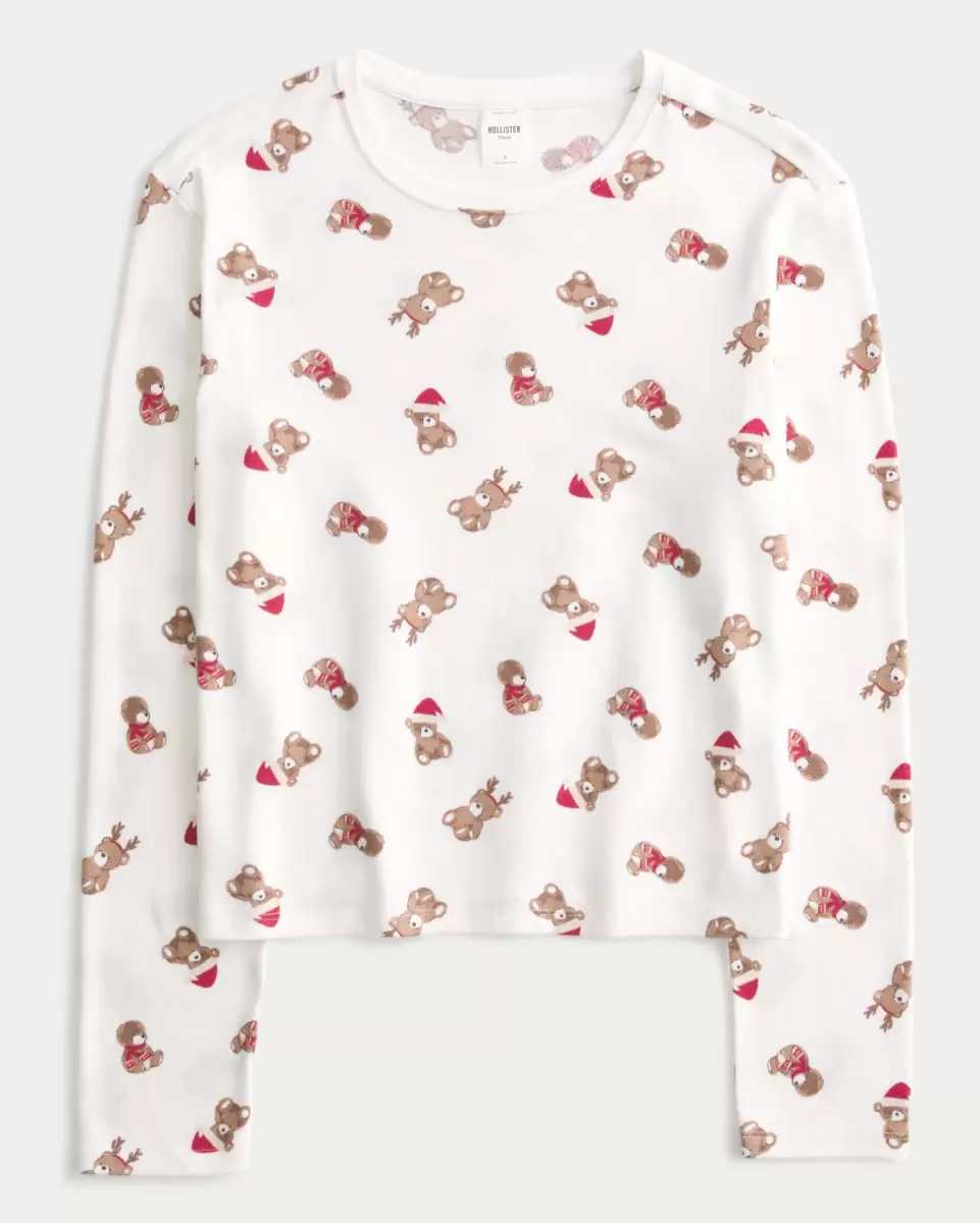 Une chemise de nuit ultra douce et confortable avec un col ras du cou, des manches longues et un motif ours en peluche sur toute la surface. Importé.