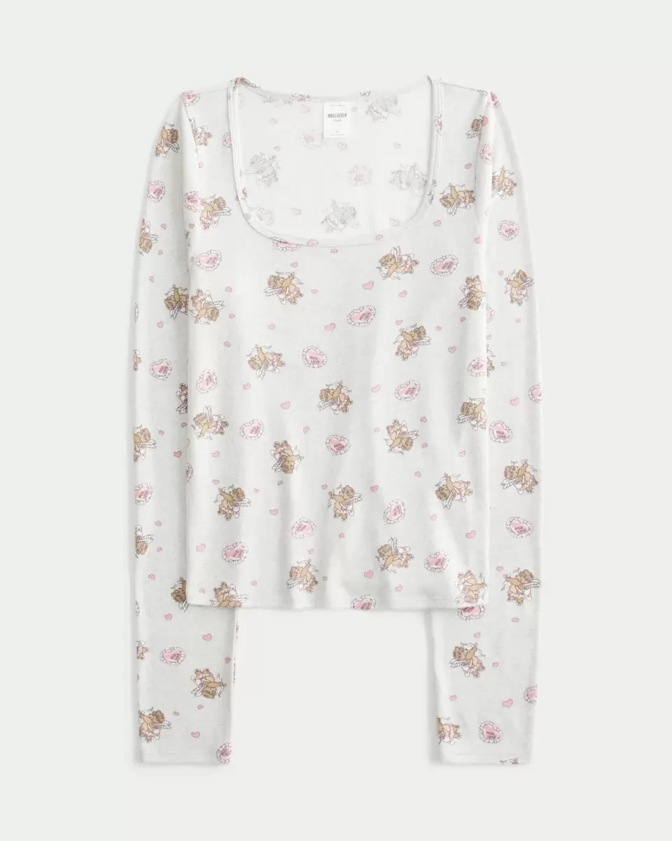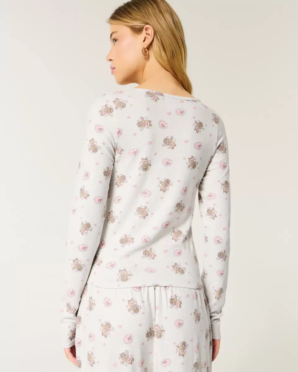 Haut de pyjama ultra doux et confortable à manches longues et motif graphique Cupidon ours sur toute la surface. Coupe facile. Importé.