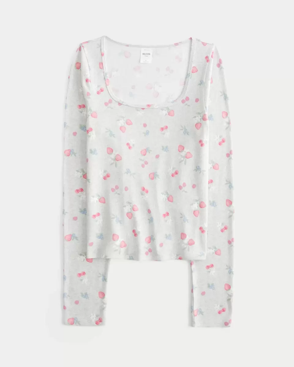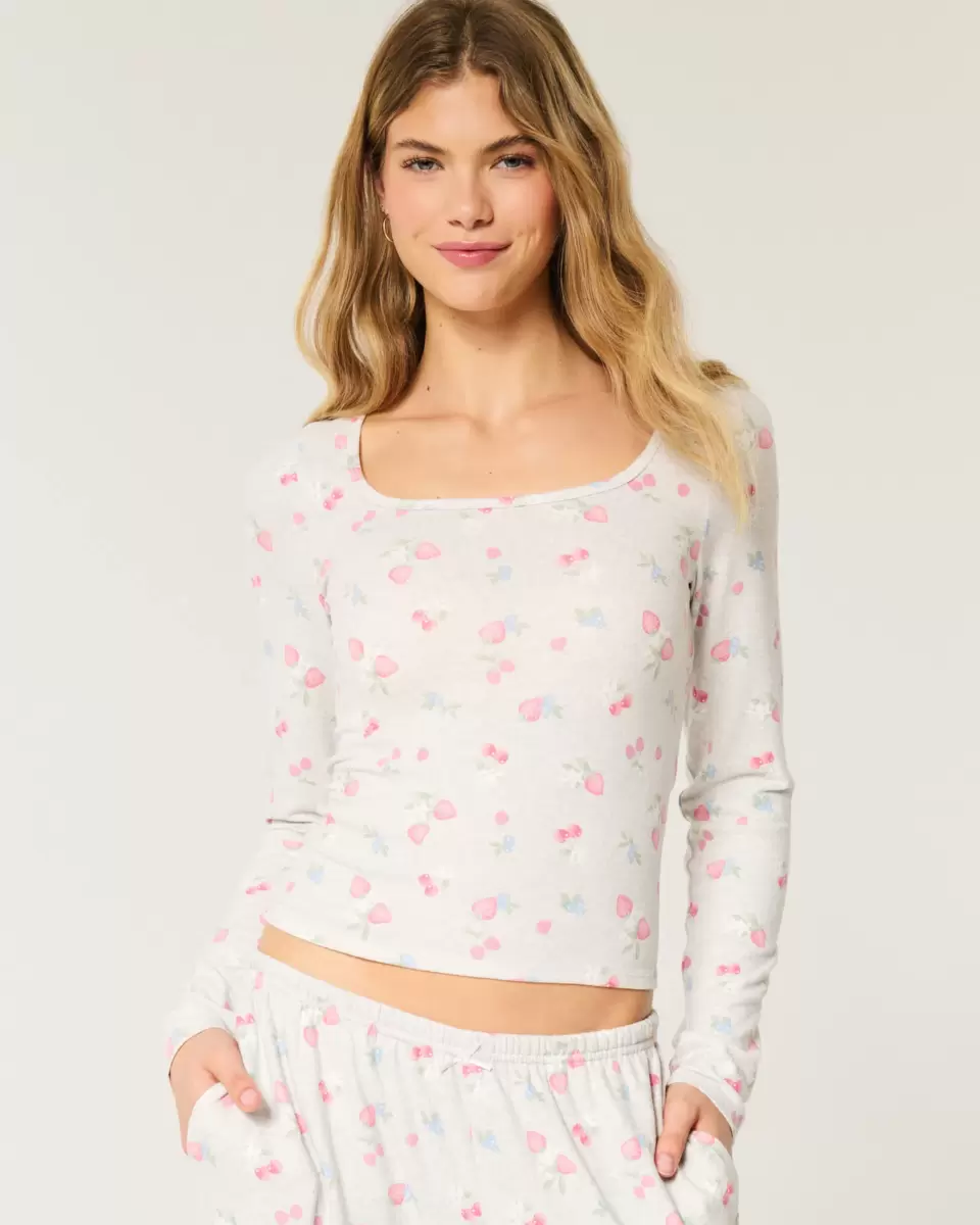 Haut de pyjama ultra doux et confortable à manches longues et imprimé baies sur toute la surface. Coupe facile. Importé.