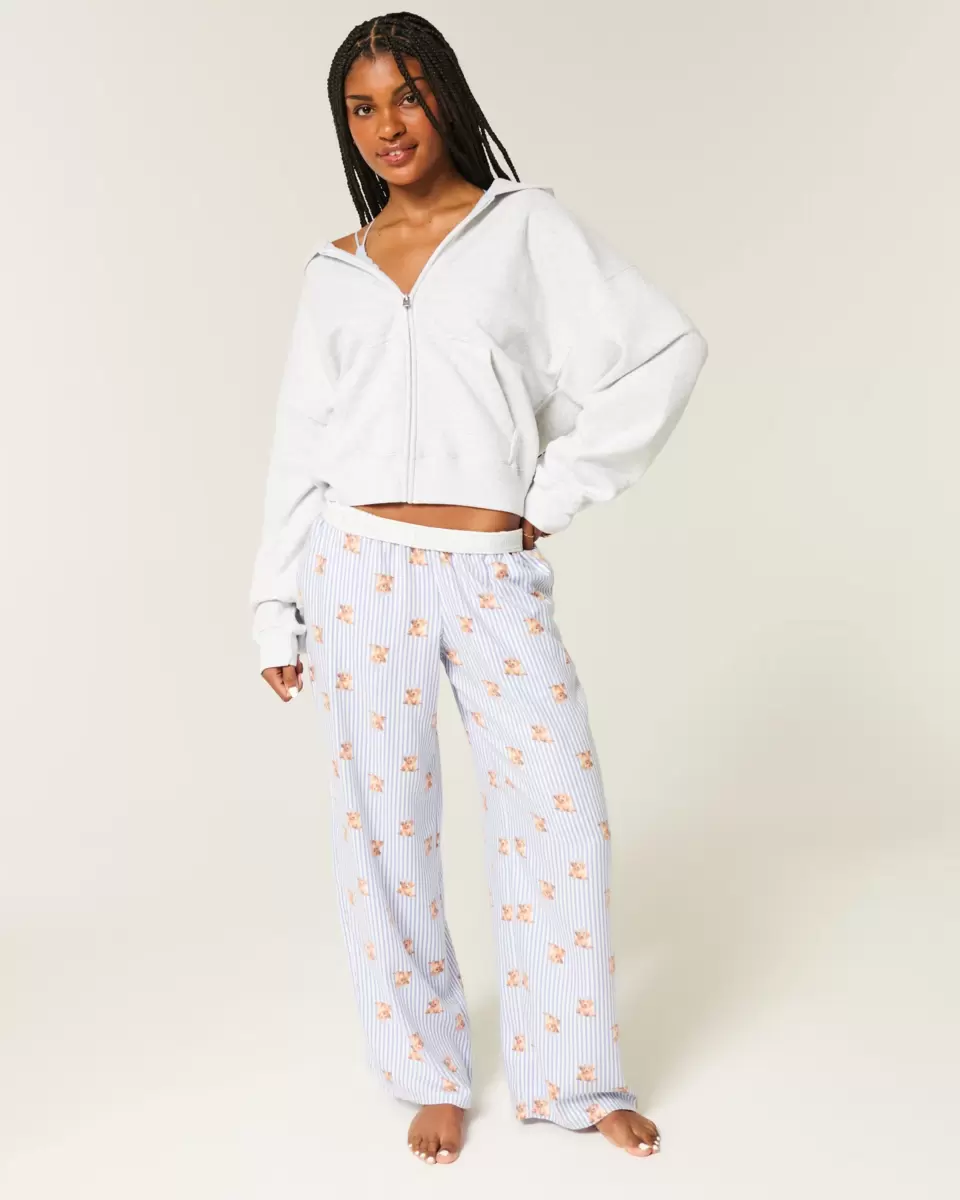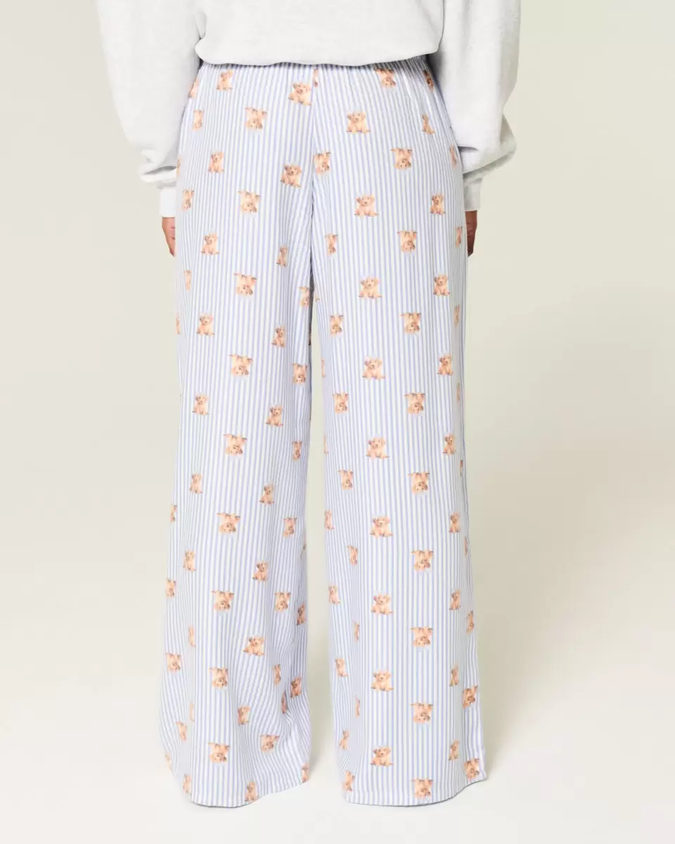 Pantalon en flanelle ultra douce avec taille ajustable et jambes amples. Poches, joli motif chiot intégral, taille repliée avec logo intérieur. Importé.
