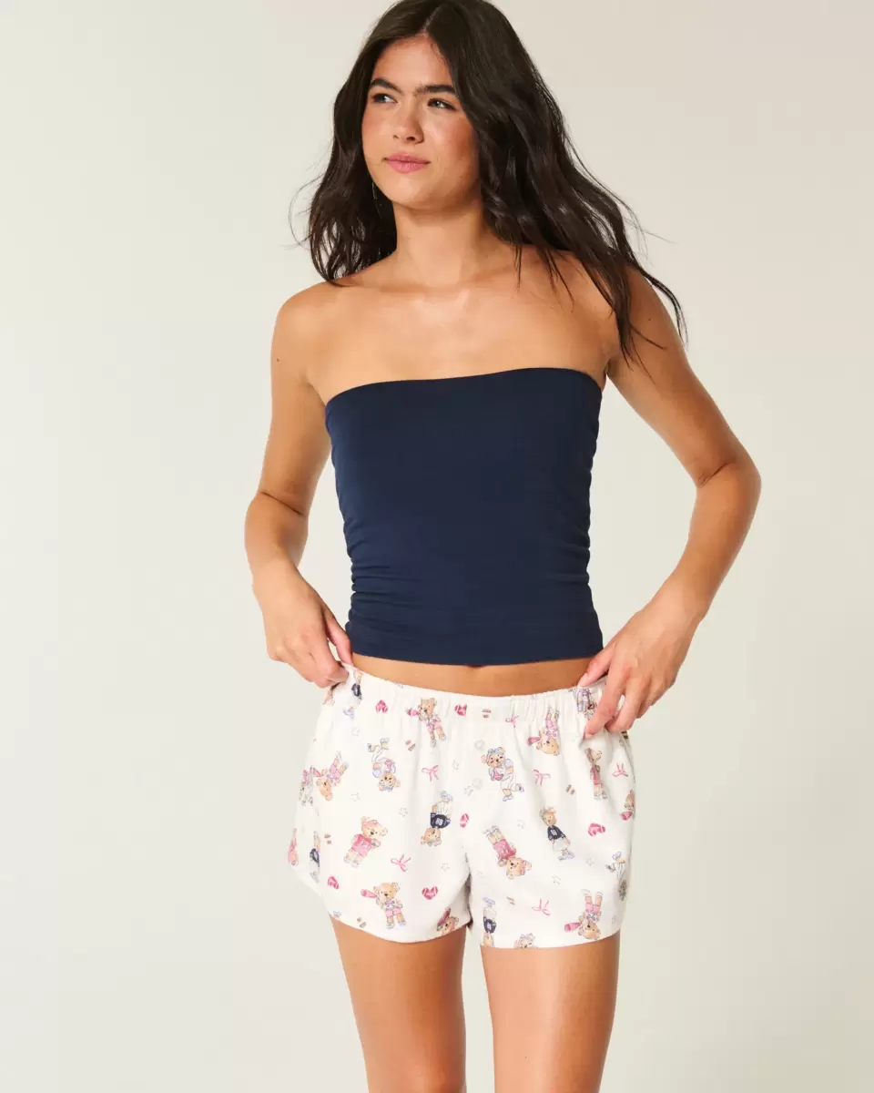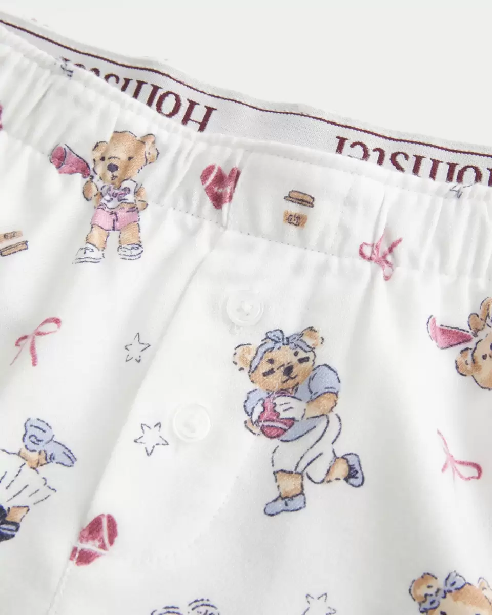 Boxer en flanelle ultra douce avec motif intégral et ceinture souple ornée de logos intérieurs. Poches. Importé.