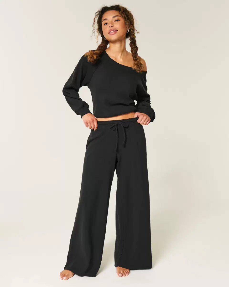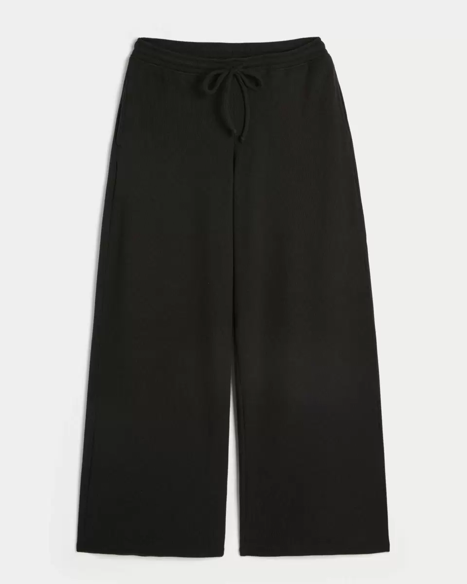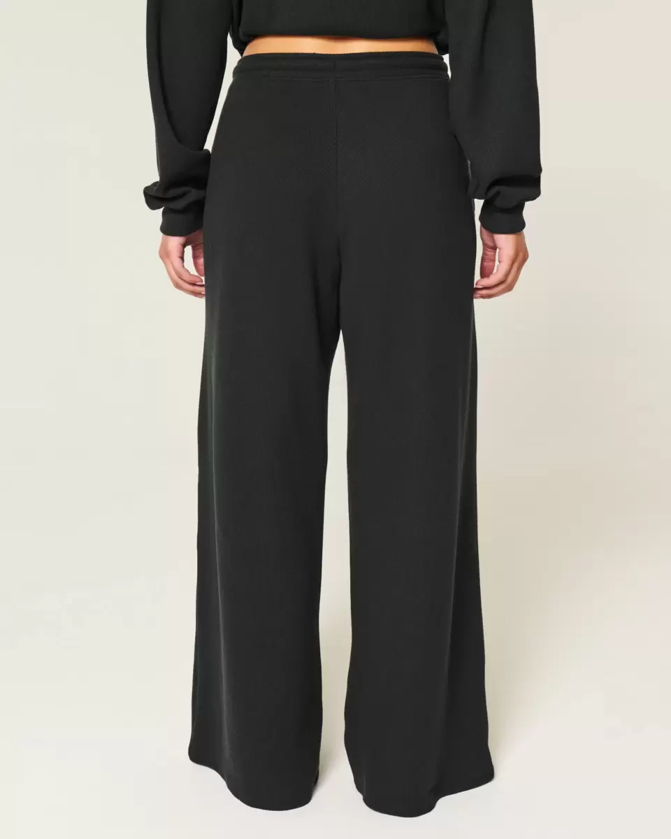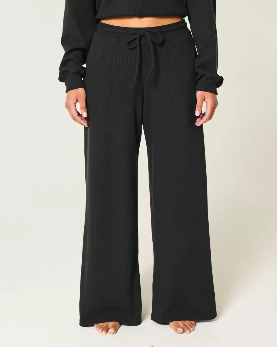 Pantalon confortable et ultra doux en tissu gaufré. Taille avec cordon de serrage, poches et coupe ample flatteuse. Importé.