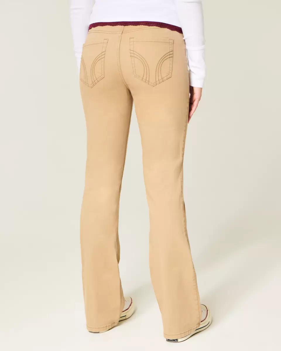 Jean confortable en denim, taille mi-haute et ourlet botte. Couleur kaki. Importé.