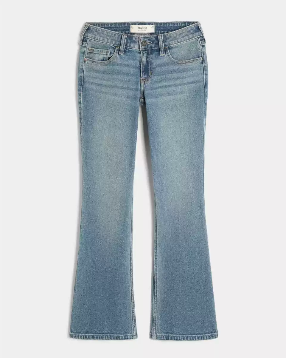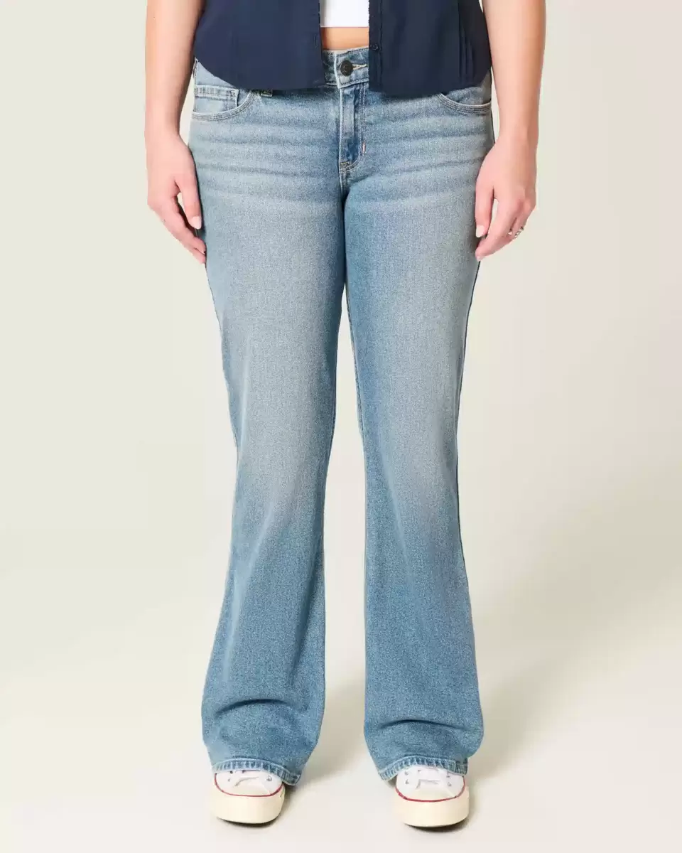 Jean confortable en denim délavé moyen, avec une taille basse flatteuse, une jambe slim et un ourlet bootcut. Denim vintage extensible. Importé.