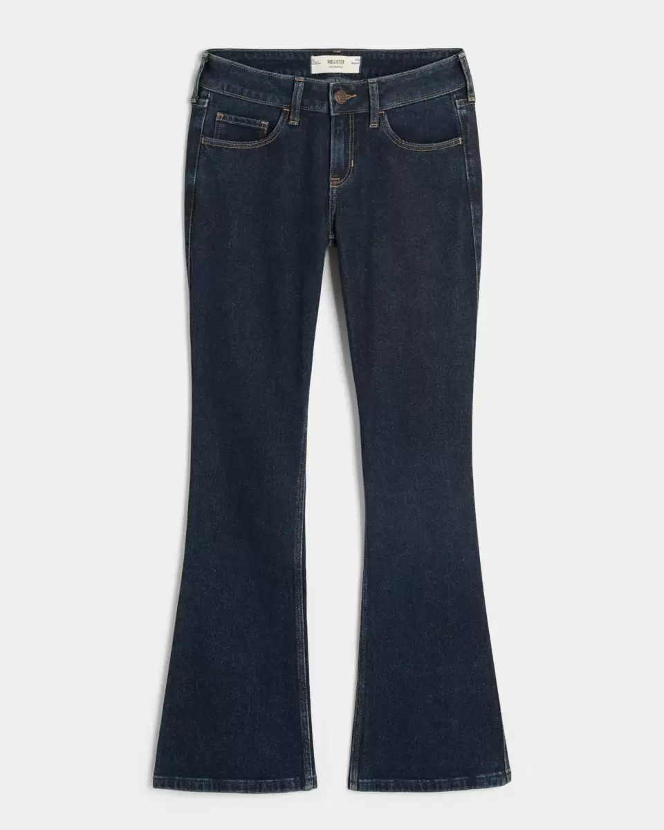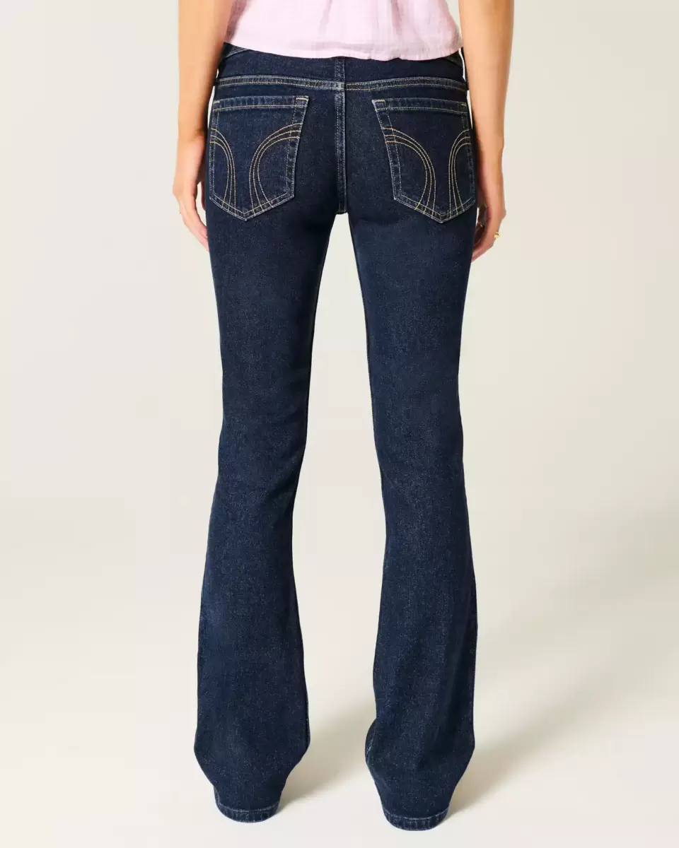Jean confortable en denim foncé, avec une taille basse flatteuse, une jambe slim et un ourlet bootcut. Denim vintage extensible. Importé.
