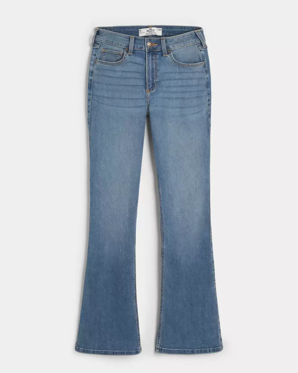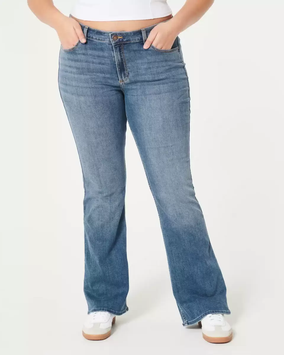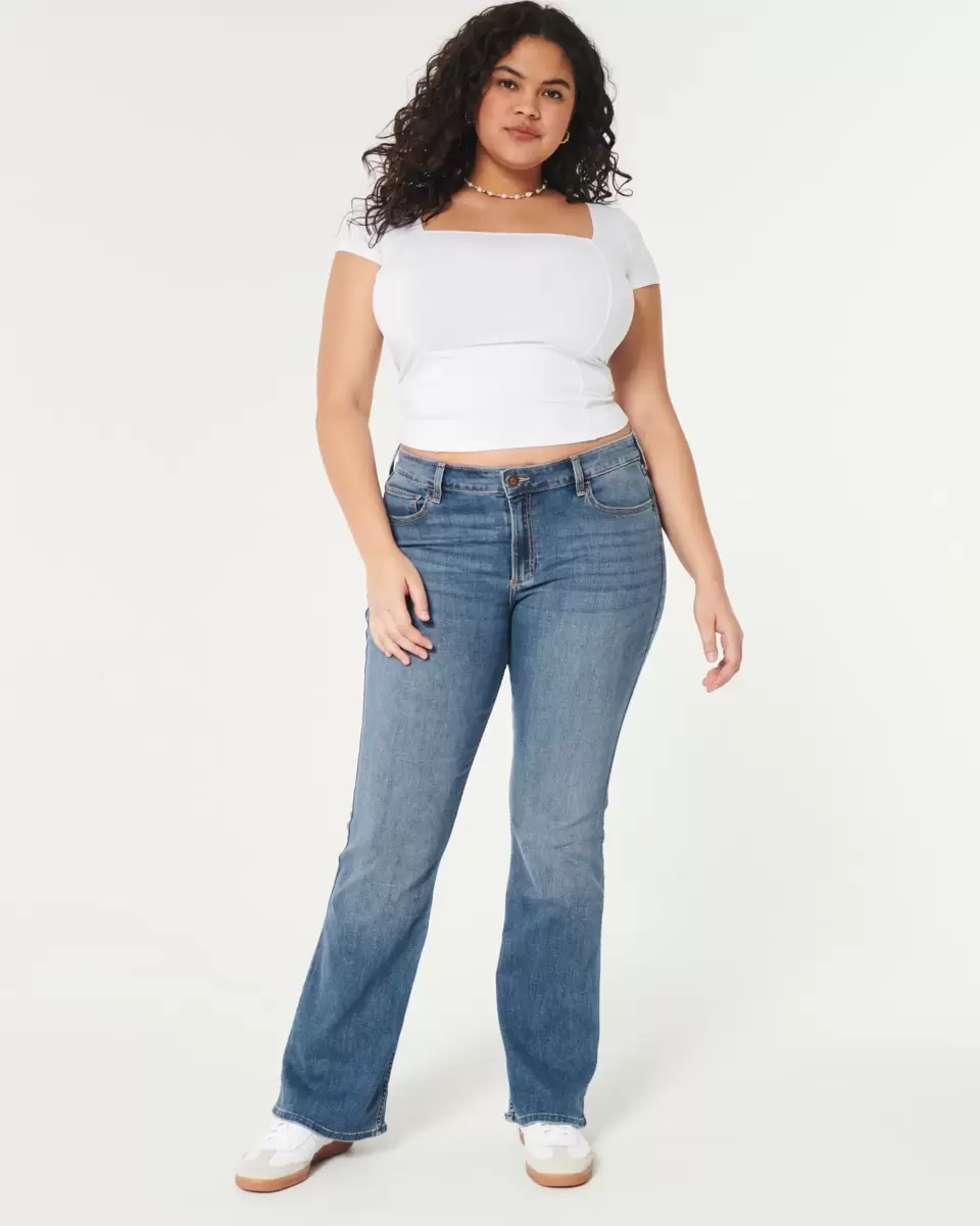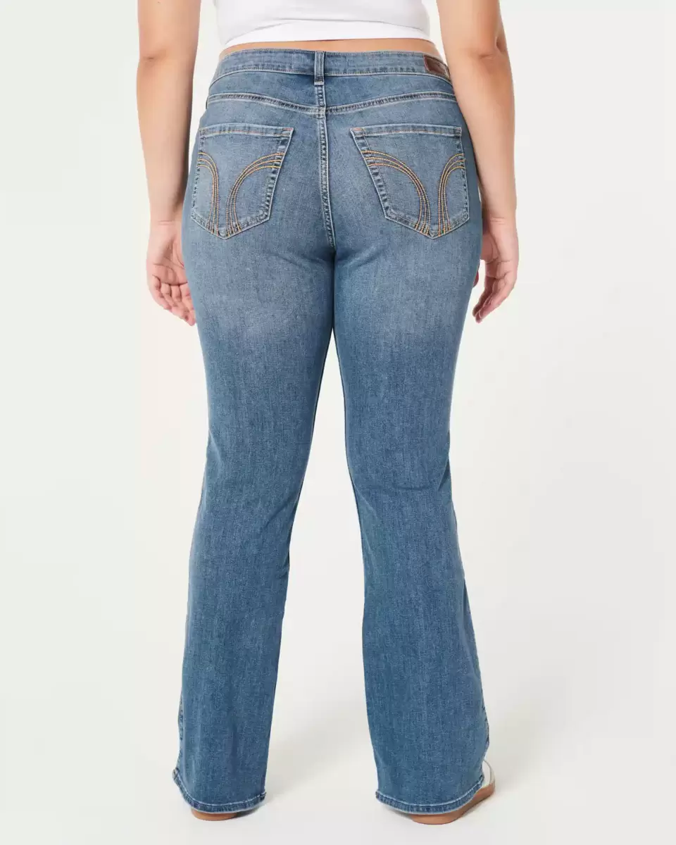 Curve et ajusté au niveau des cuisses avec un ourlet plus large sous la cheville, ce jean bootcut au délavage moyen présente une taille mi-haute flatteuse, des effets de décoloration et de moustaches. Fabriqué en tissu extensible. Importé.