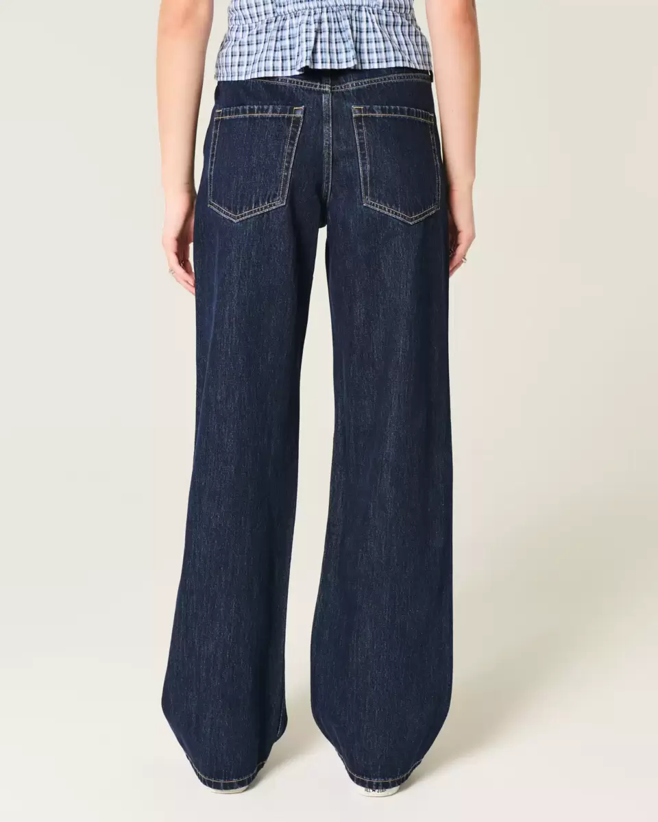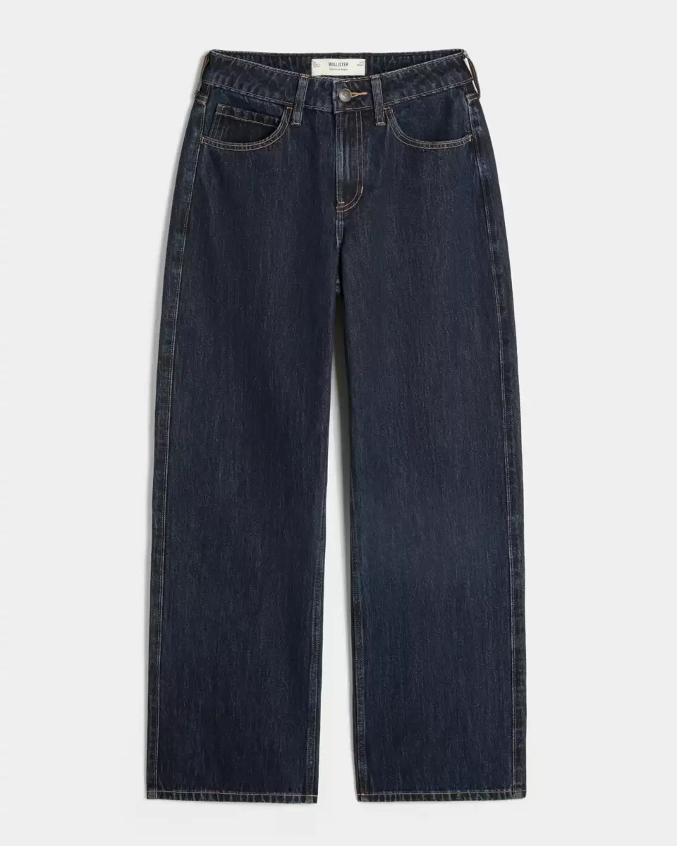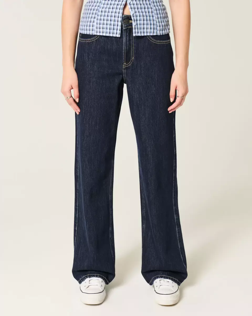Jean confortable en denim, taille haute flatteuse et jambe ample. Importé.