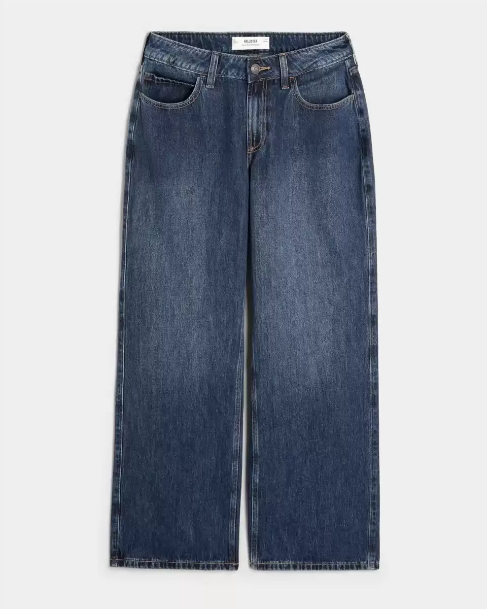 Conçu avec une taille mi-haute et une jambe ample. Denim foncé délavé. Importé.