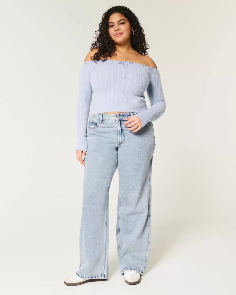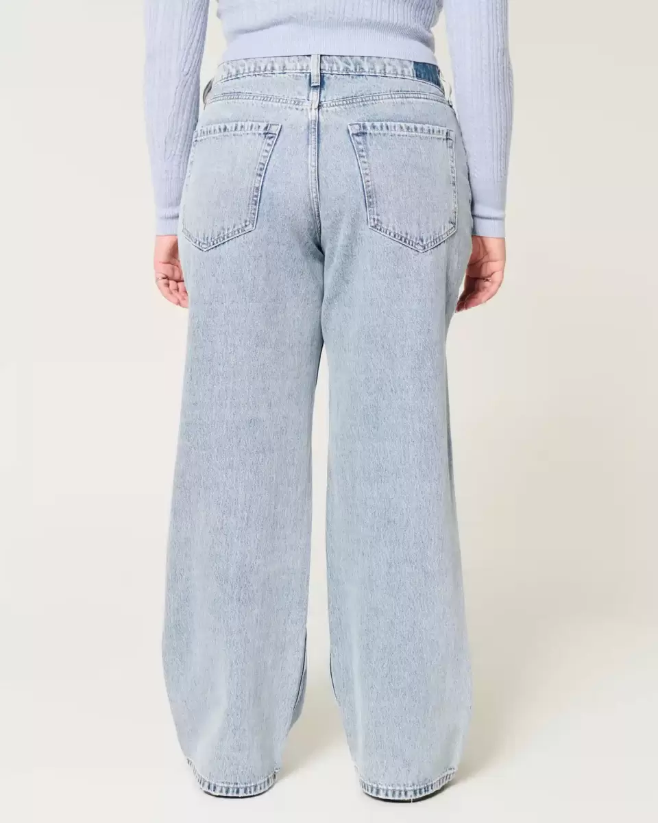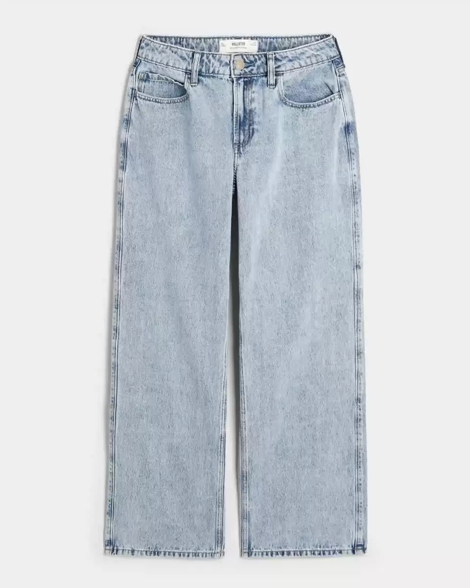 Conçu avec une taille mi-haute et une jambe ample. Denim délavé moyen avec décoloration. Importé.