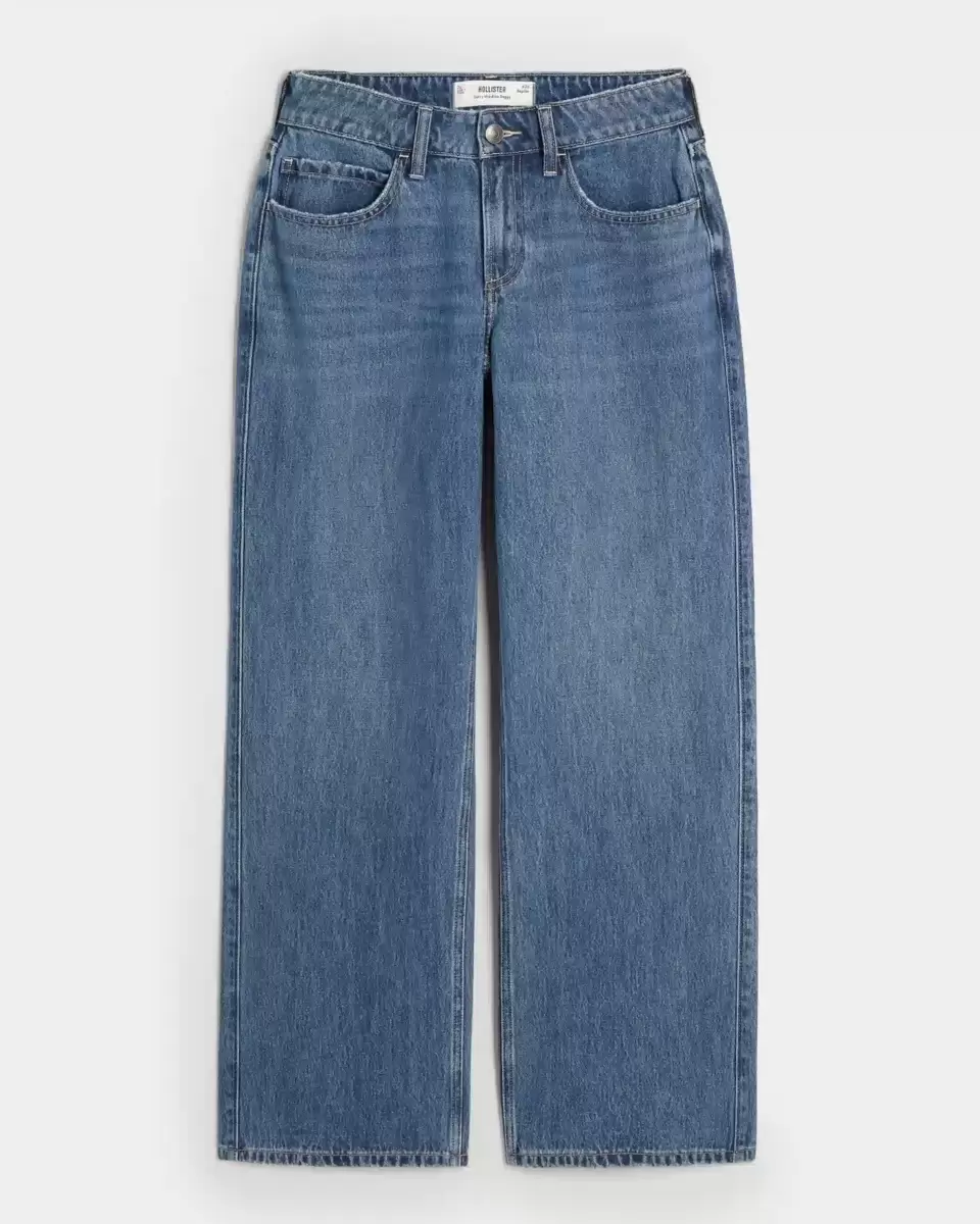 Conçu avec une taille mi-haute et une jambe ample. Denim délavé moyen avec effet moustaches et décoloration. Importé.