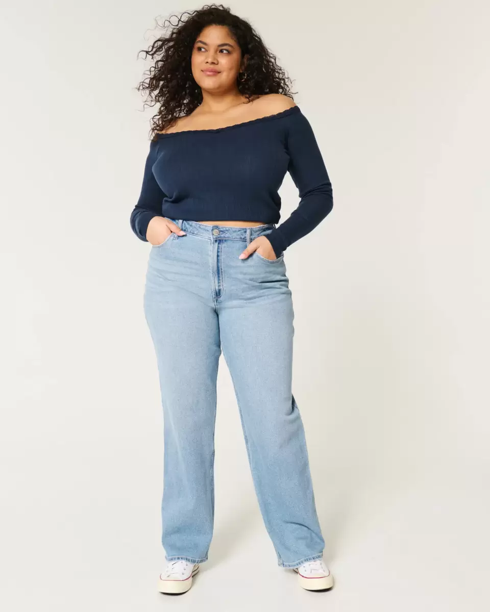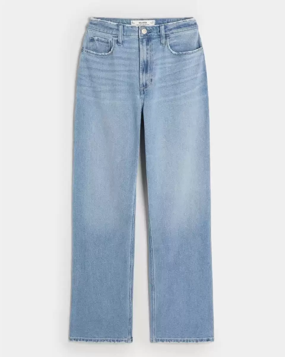 Conçu avec une taille ultra-haute et une jambe décontractée. Denim extensible vintage au délavage moyen avec décoloration et moustaches. Importé.