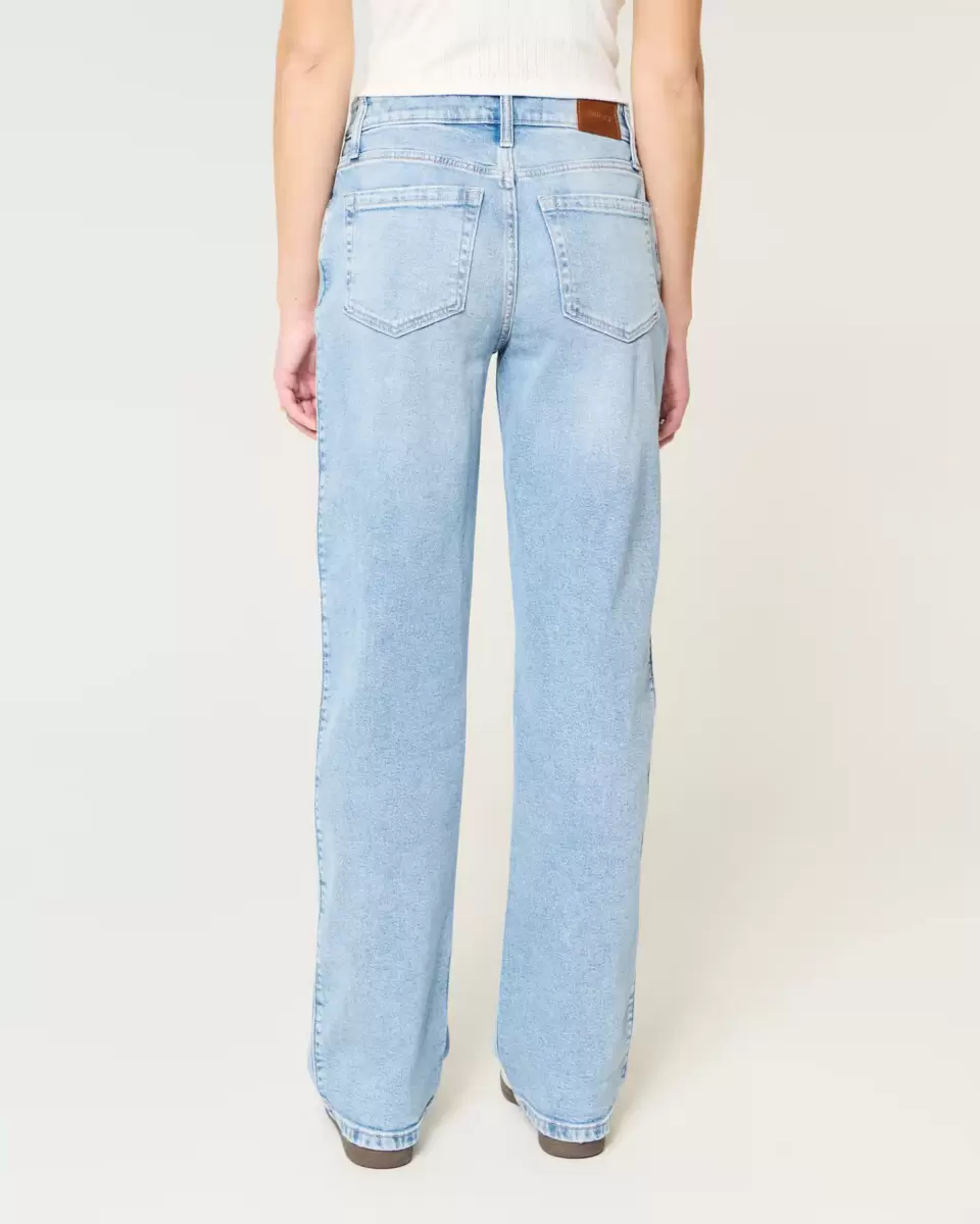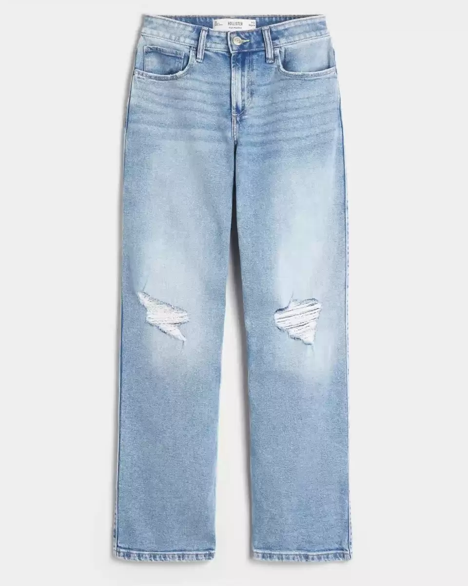 Jean mignon et confortable au délavage moyen, avec une taille haute flatteuse et une jambe décontractée. Décoloration, effet moustaches et déchirures, denim stretch vintage. Importé.