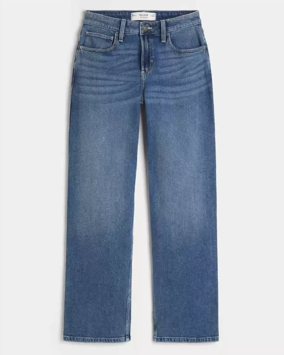 Jean mignon et confortable au délavage foncé, avec une taille haute flatteuse et une jambe décontractée. Denim vintage extensible avec effet délavé et effet moustaches. Importé.