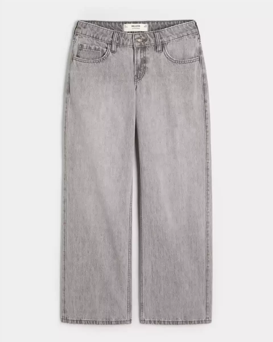 Jean gris mignon et confortable, avec une taille basse flatteuse et une jambe ample. Importé.