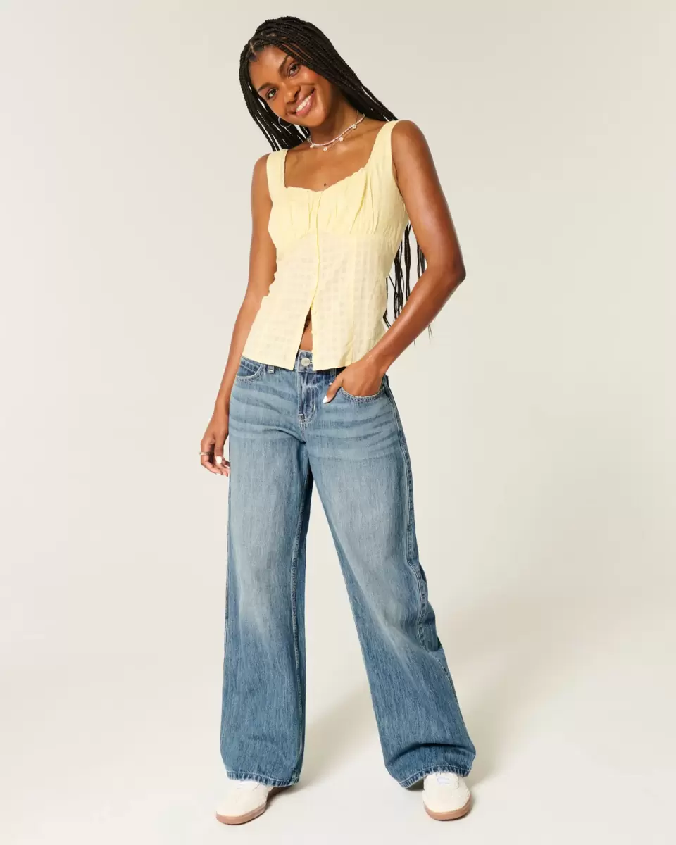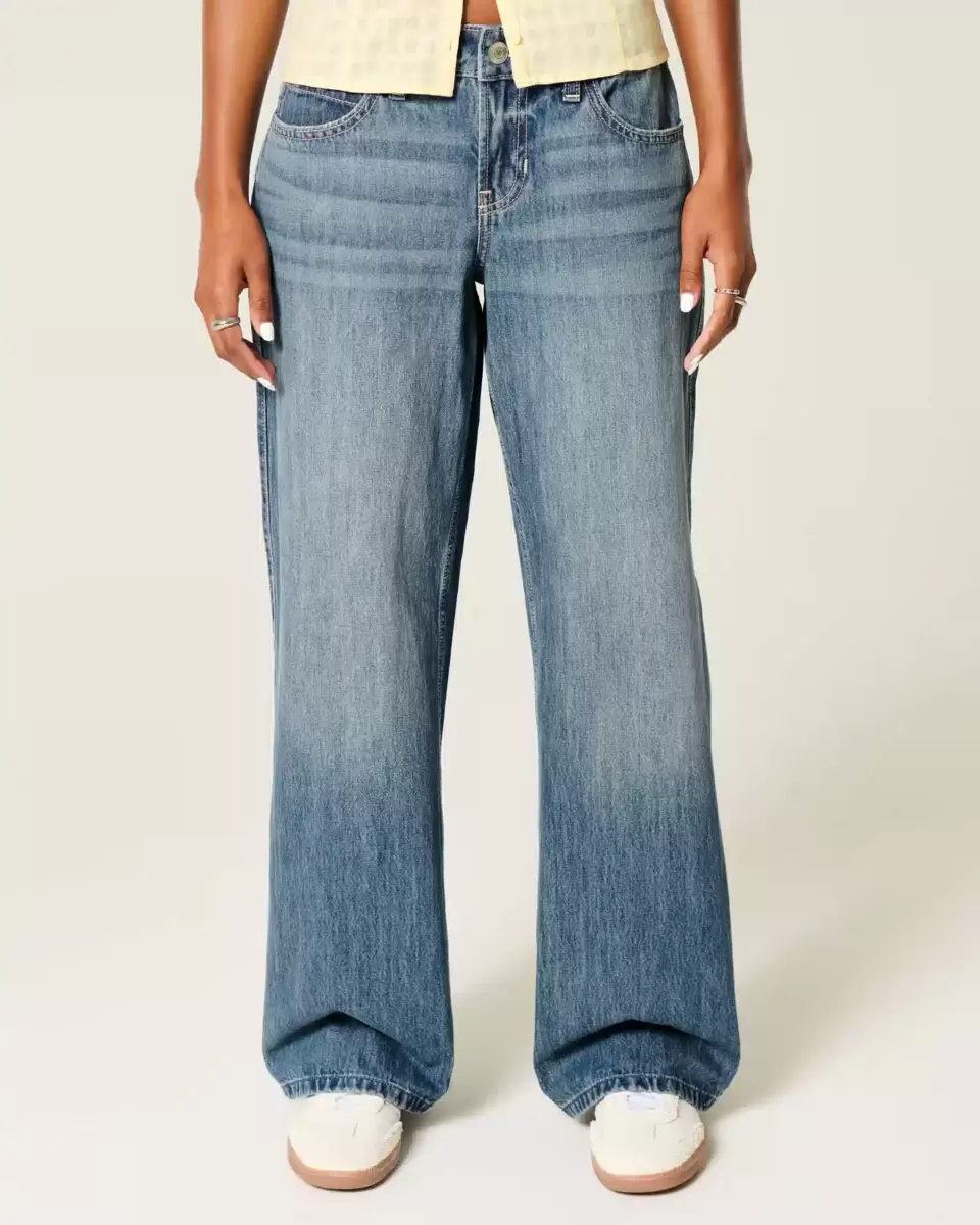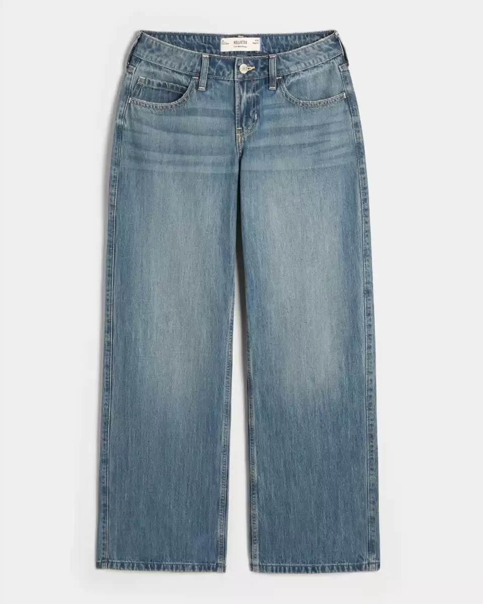 Jean confortable en denim, délavage moyen, avec jambe ample et taille basse flatteuse. Joli motif « I Heart LA » appliqué au dos, décoloration et effet moustaches. Importé.