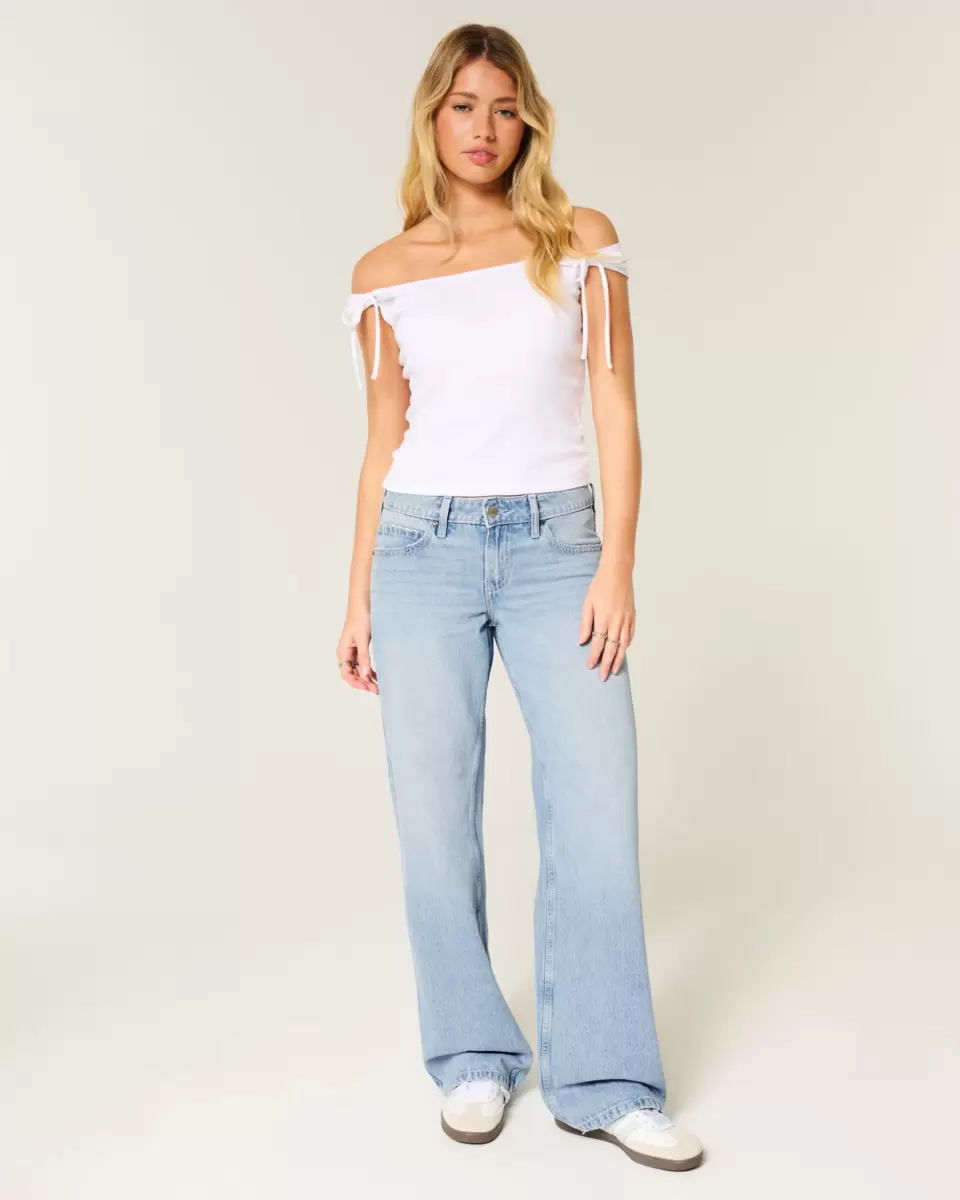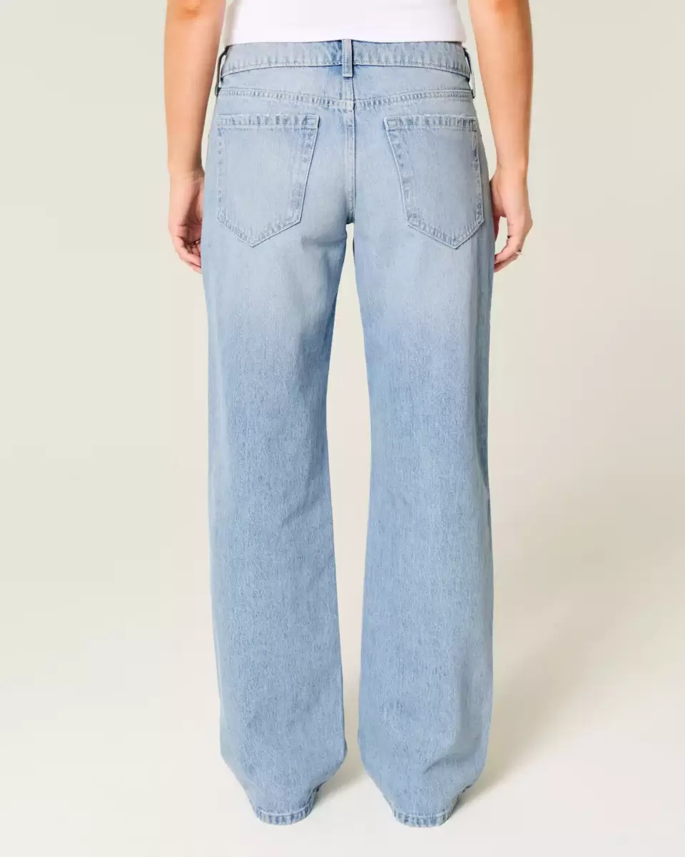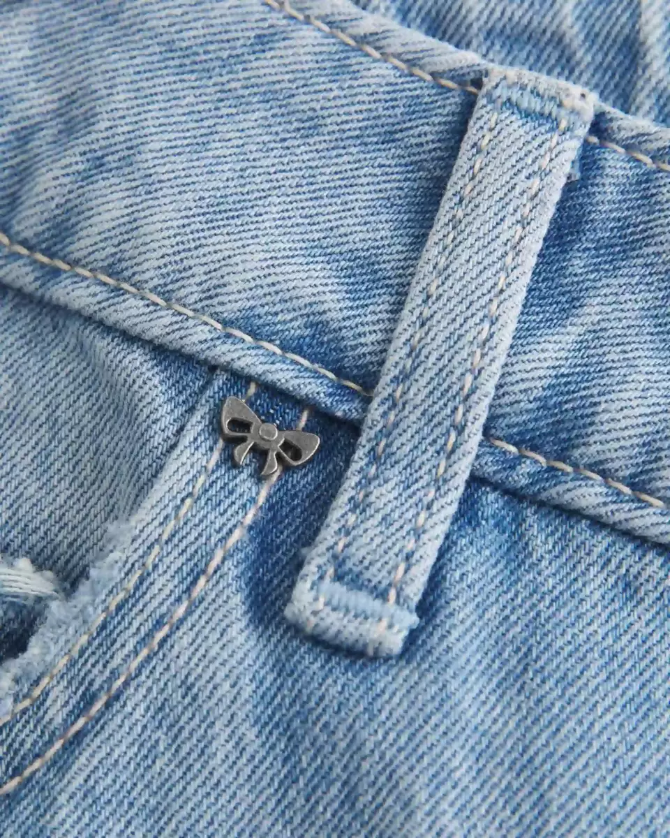 Jean confortable en denim légèrement délavé, avec une jambe ample et une taille basse flatteuse. Jolis nœuds cloutés en métal, décoloration et effet moustaches. Importé.