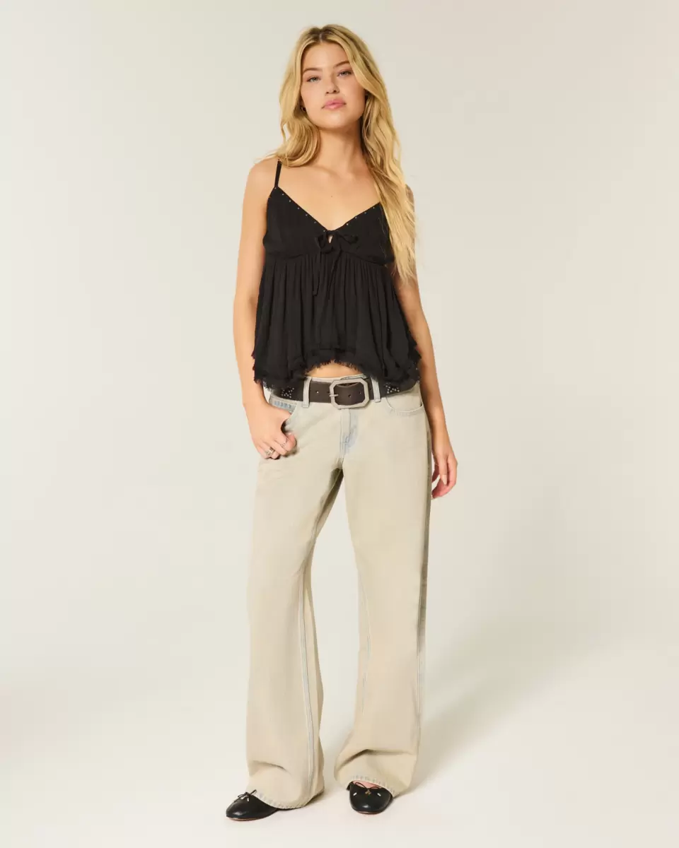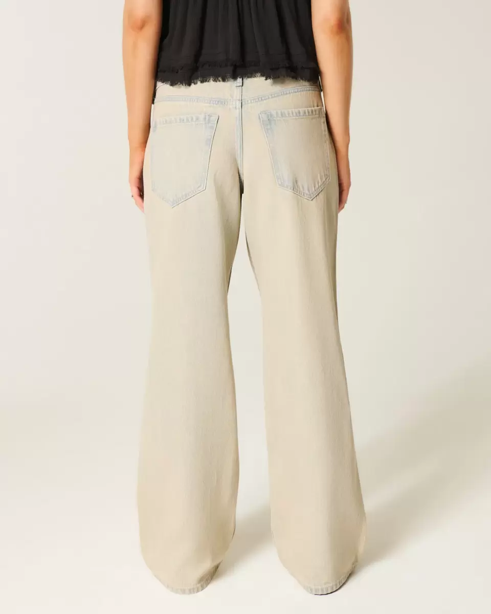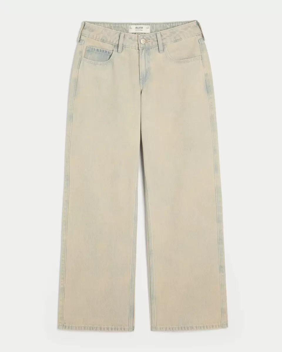 Jean confortable en denim légèrement délavé, taille basse et jambe ample. Importé.