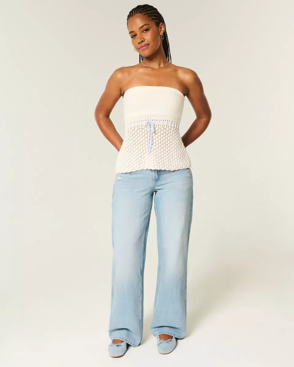 Ce jean confortable est conçu avec une taille basse et une jambe ample. Décoloration, moustaches et détails usés. Importé.