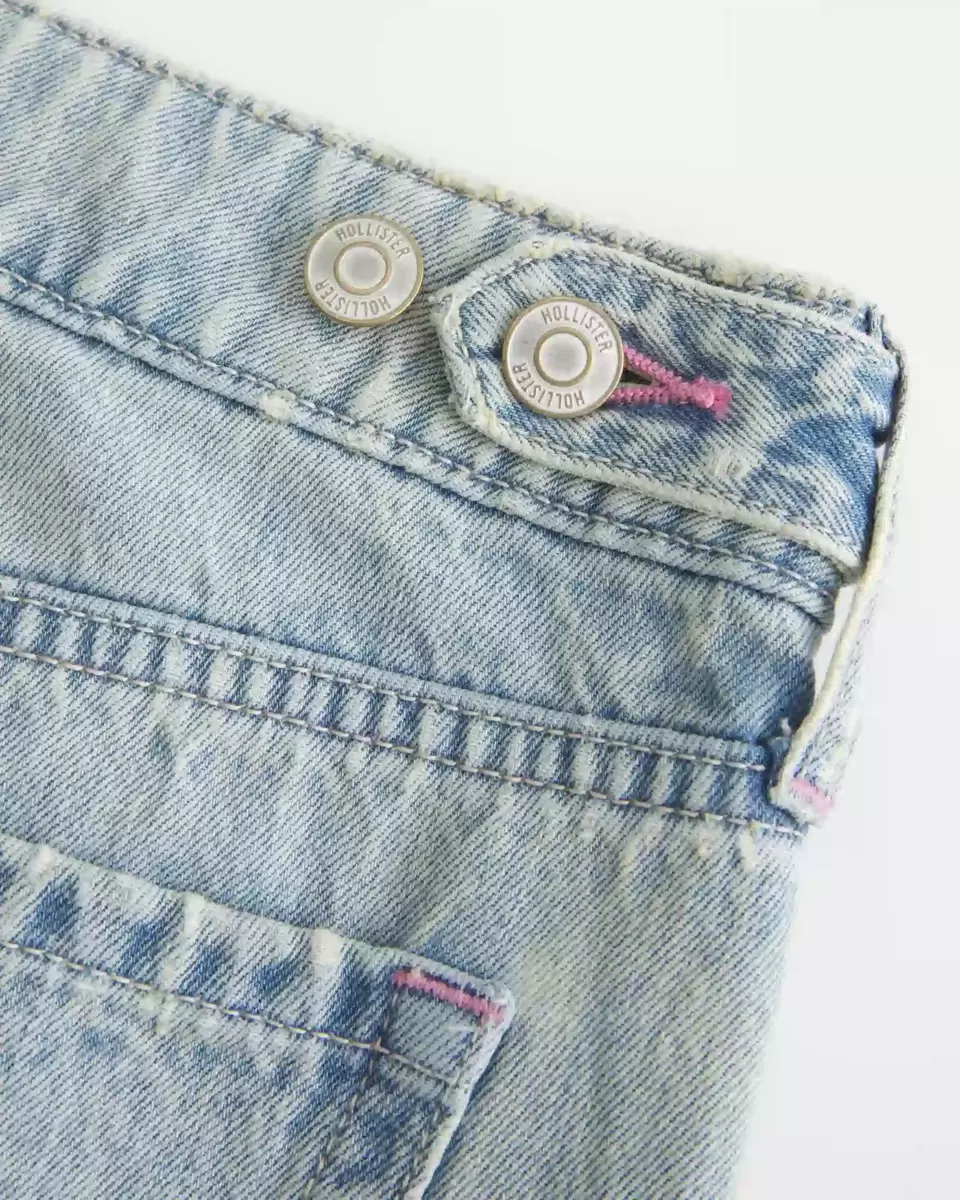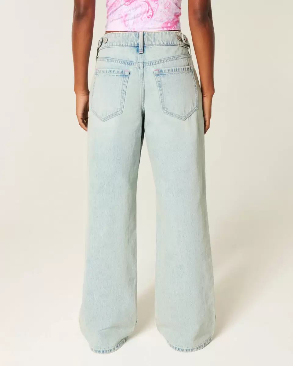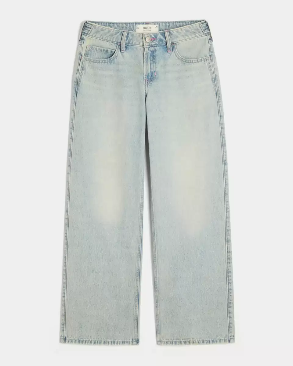 Jean confortable en denim légèrement délavé, avec taille basse ajustable et jambe ample. Décoloration et effet moustaches. Importé.