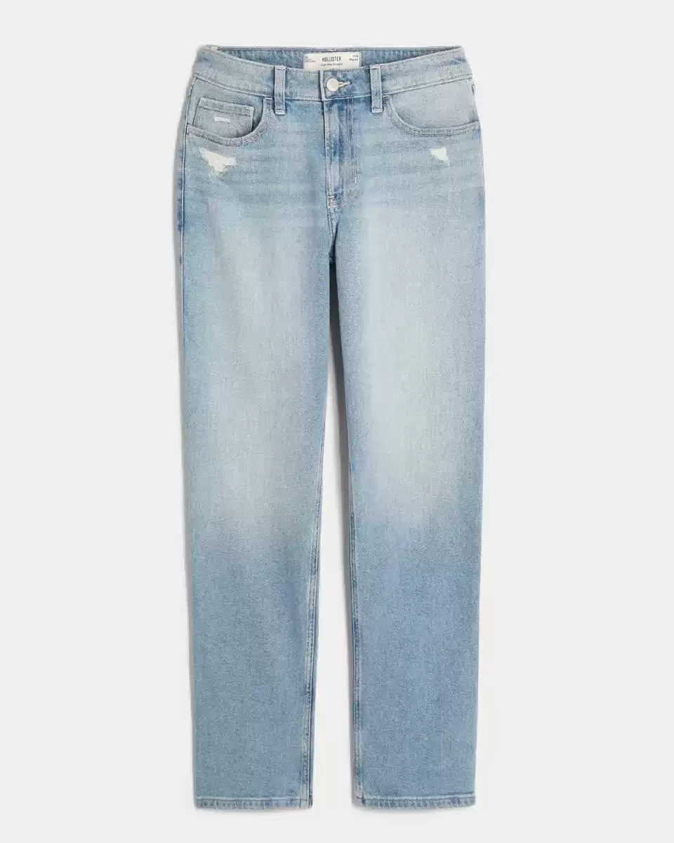 Jean confortable en denim extensible vintage au délavage clair, avec une taille haute flatteuse et une jambe droite. Décoloration, effets de moustaches et détails usés. Importé.