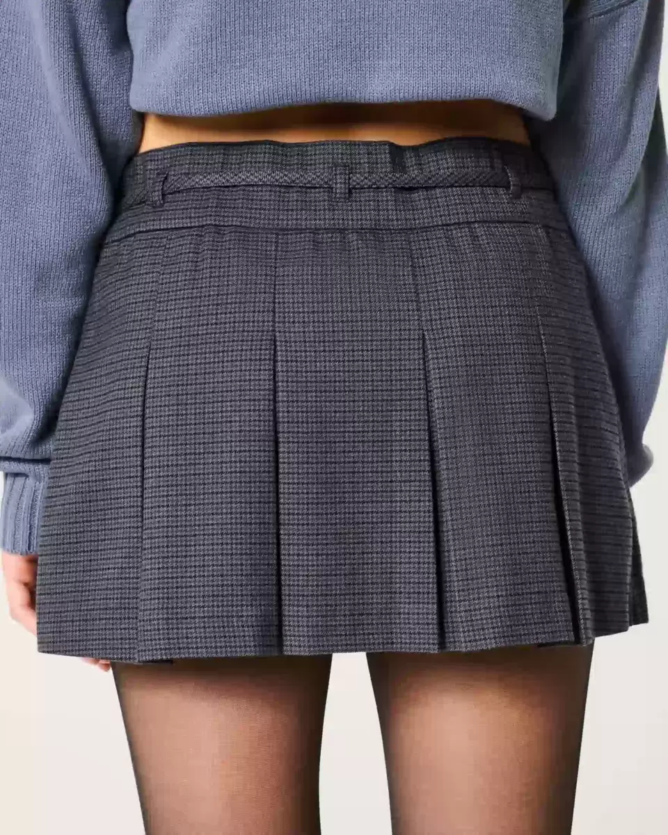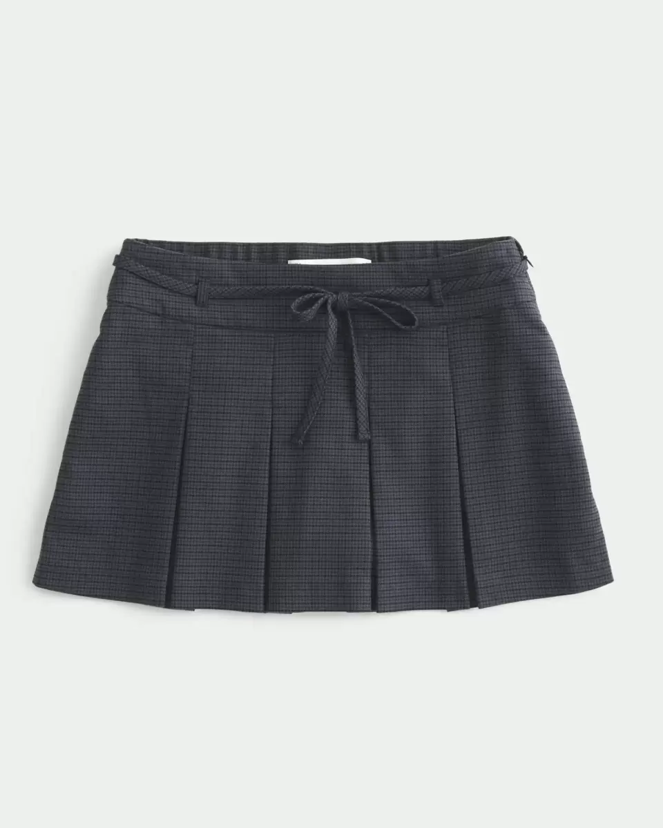 Cette jolie mini-jupe est dotée d’une taille nouée, d’un short dissimulé et de plis classiques. Taille mi-haute et poches. Importé.