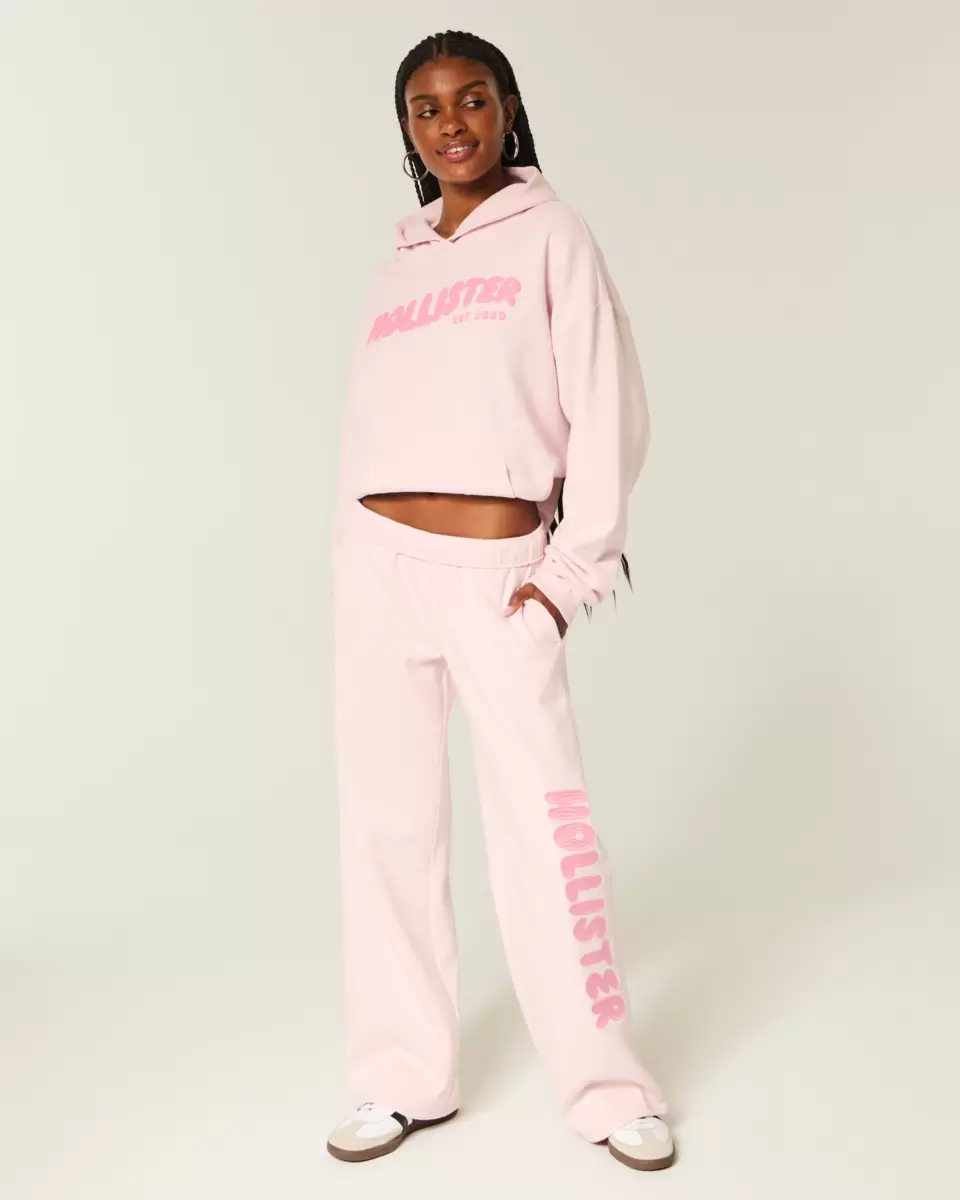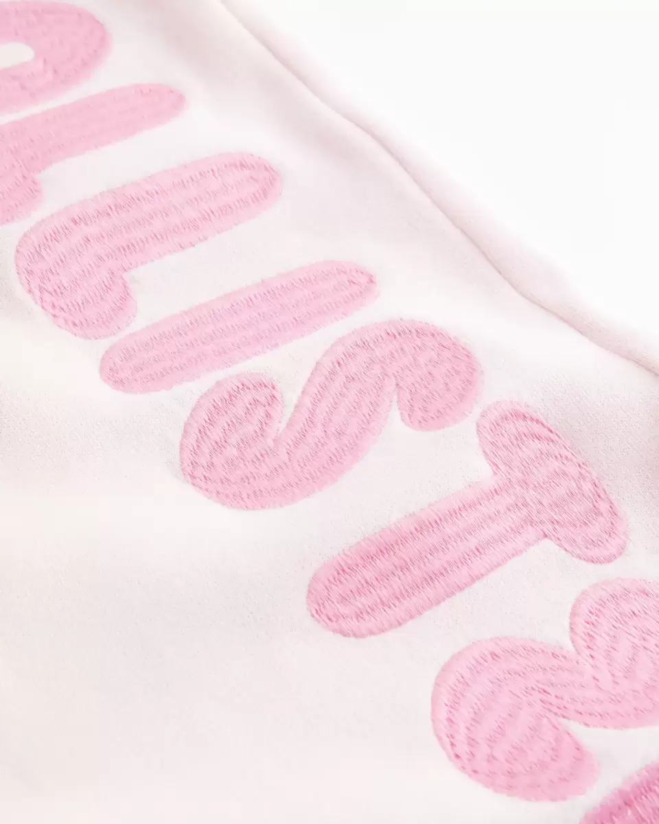 Pantalon de survêtement en molleton ultra doux, coupe large et taille mi-haute cintrée. Logo brodé, poches. Importé.
