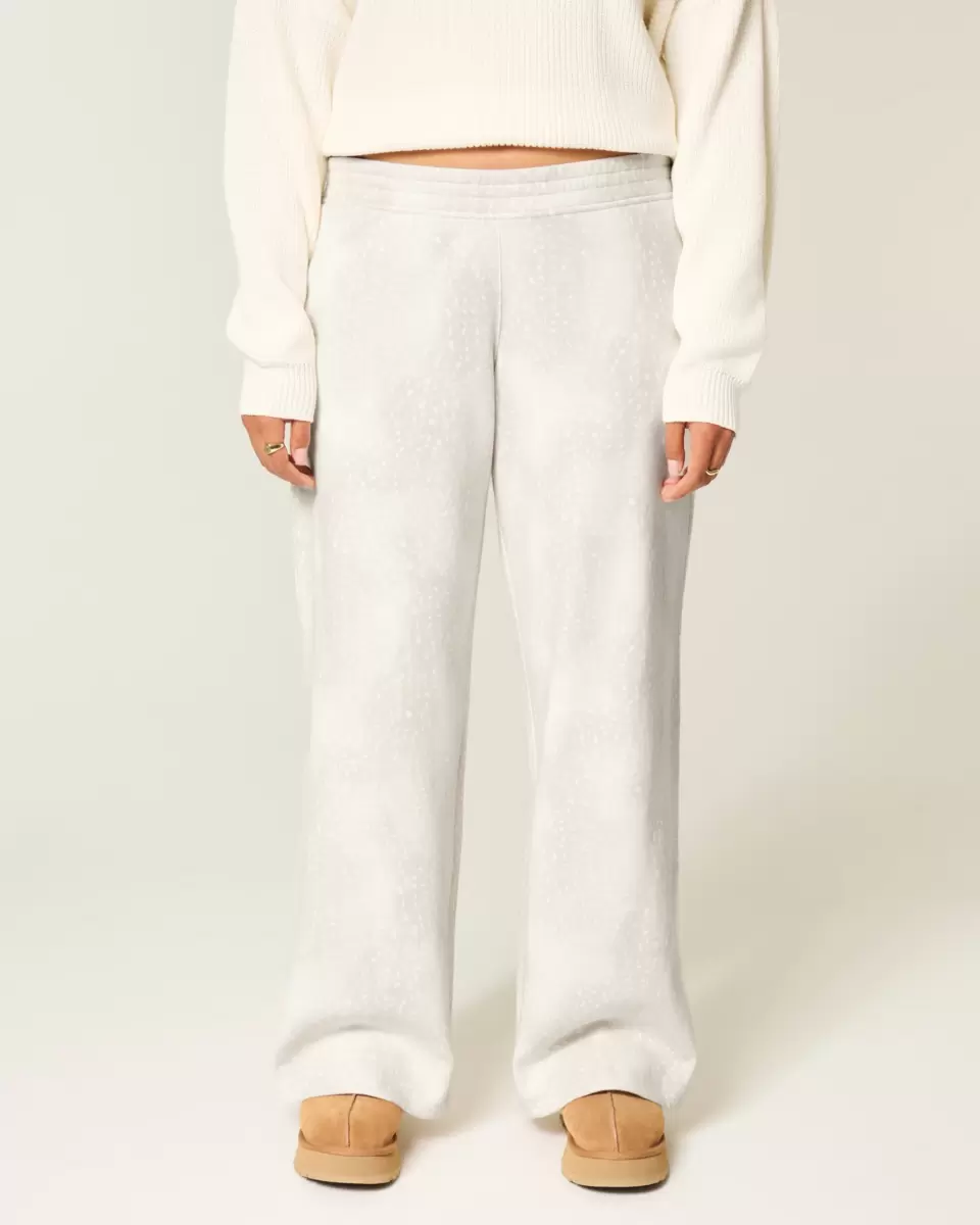 Pantalon de survêtement en polaire ultra doux avec jambe ample et taille cintrée. Poches et imprimé biche sur l’ensemble. Importé.