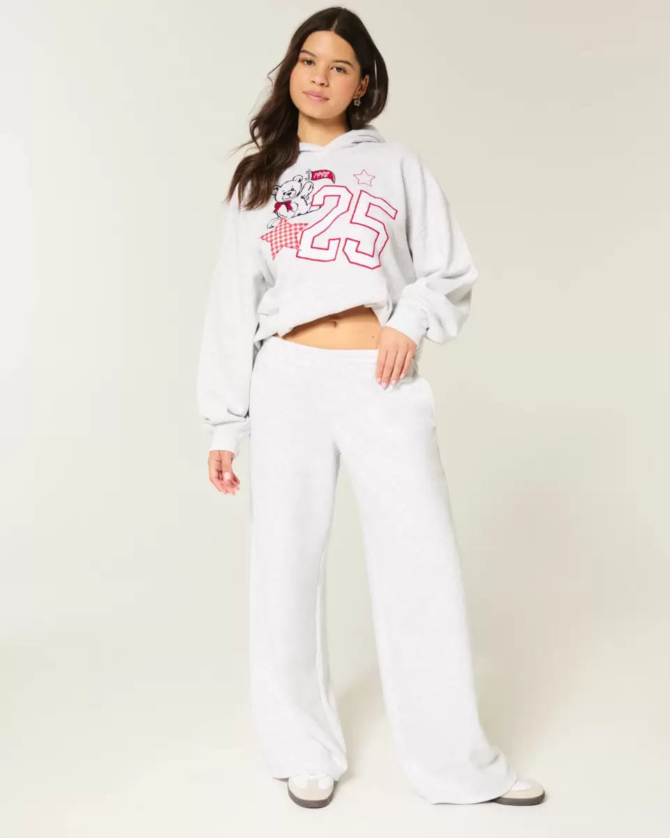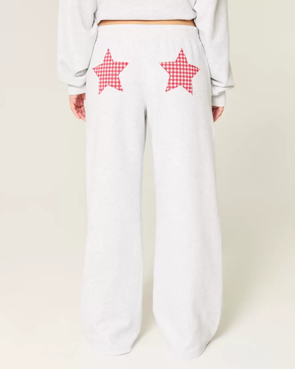 Pantalon de survêtement en polaire ultra doux avec jambe ample et taille cintrée. Poches avant, motif étoile appliqué au dos. Importé.
