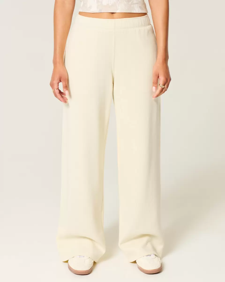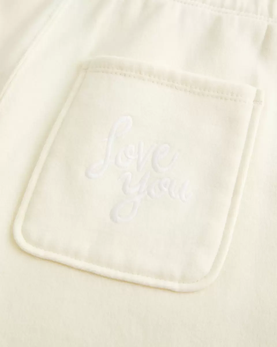 Pantalon de survêtement en polaire ultra doux, coupe large et taille cintrée. Broderie « Love You » sur la poche arrière.
