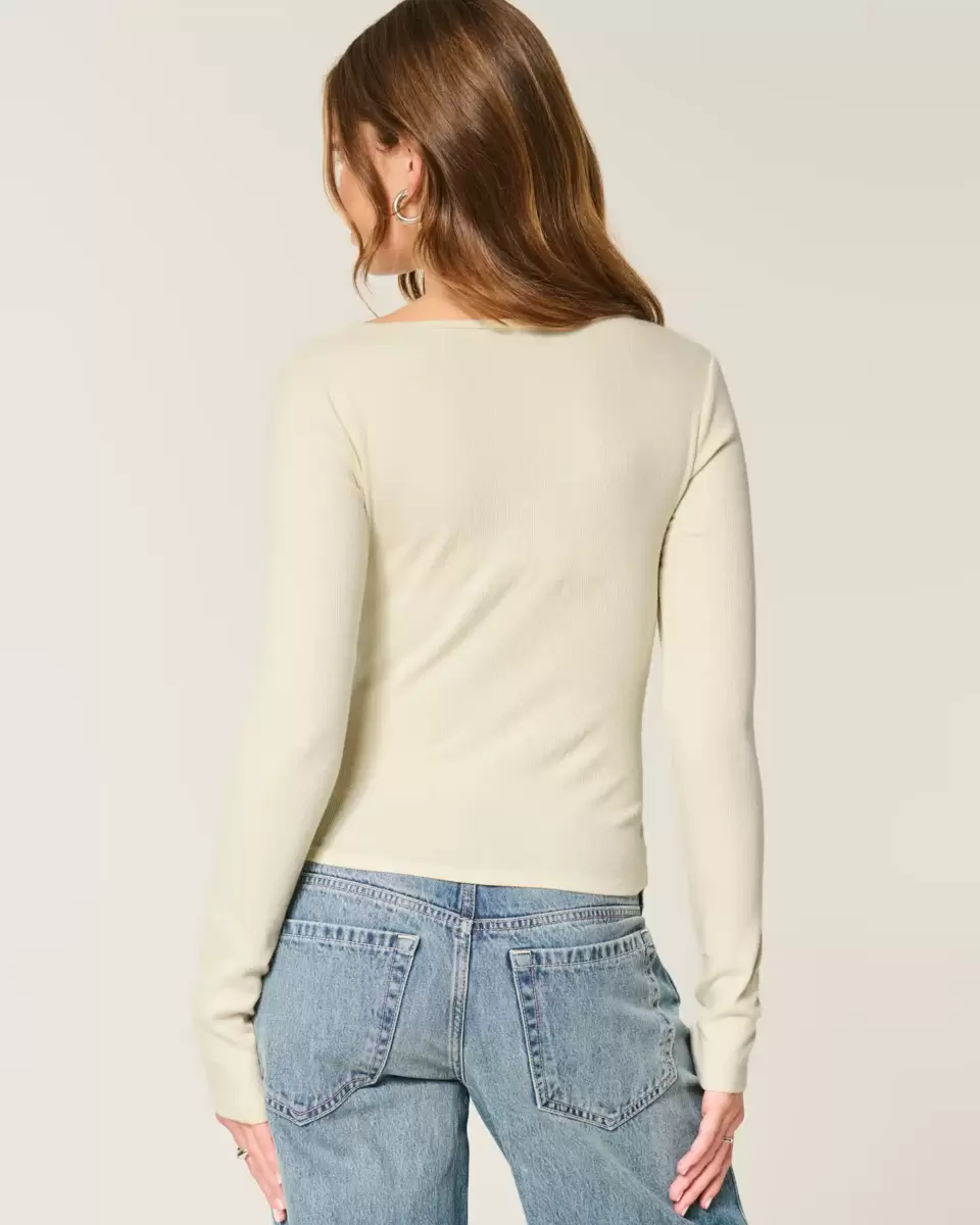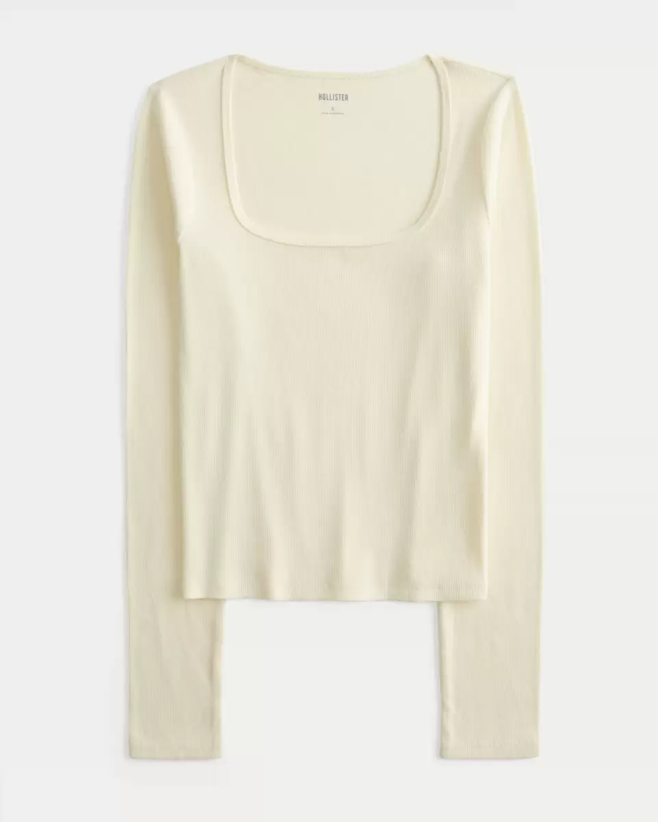 Haut à manches longues confortable et ultra doux avec une encolure carrée. Importé.