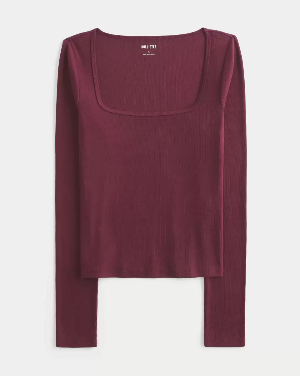 Haut à manches longues confortable et ultra doux avec une encolure carrée. Importé.