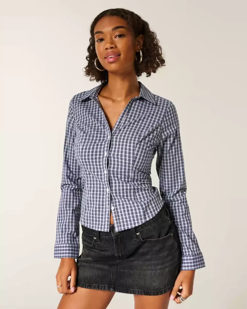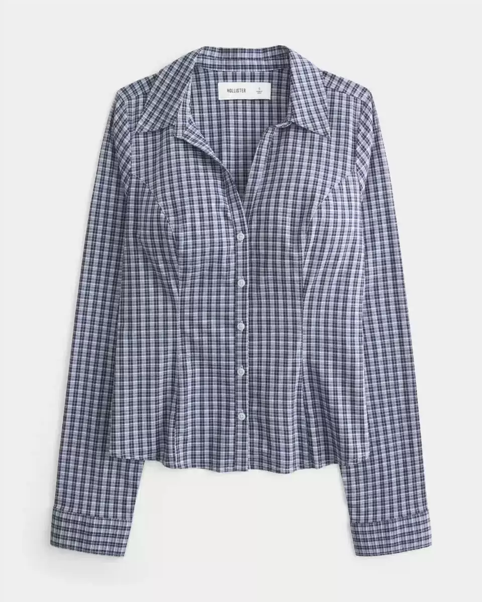 Chemise en popeline extensible à manches longues, coupe ajustée, d’inspiration années 2000, avec col, coutures apparentes et lien réglable au dos. Fermeture boutonnée sur toute la longueur. Coupe ajustée. Importé.