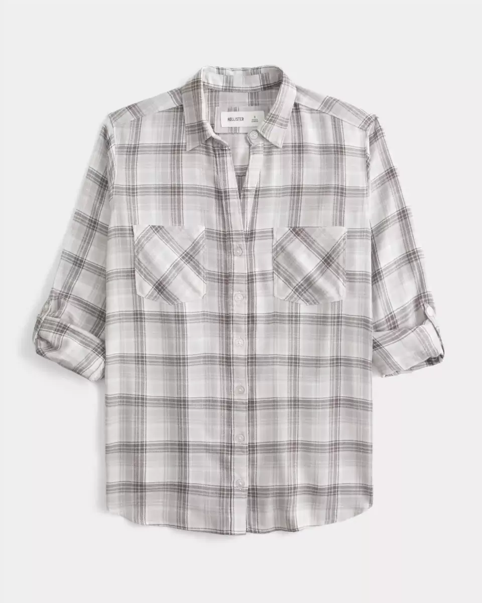 Chemise en flanelle ultra douce avec fermeture boutonnée, poches poitrine et pattes de boutonnage aux manches. Col. Coupe oversize. Importé.