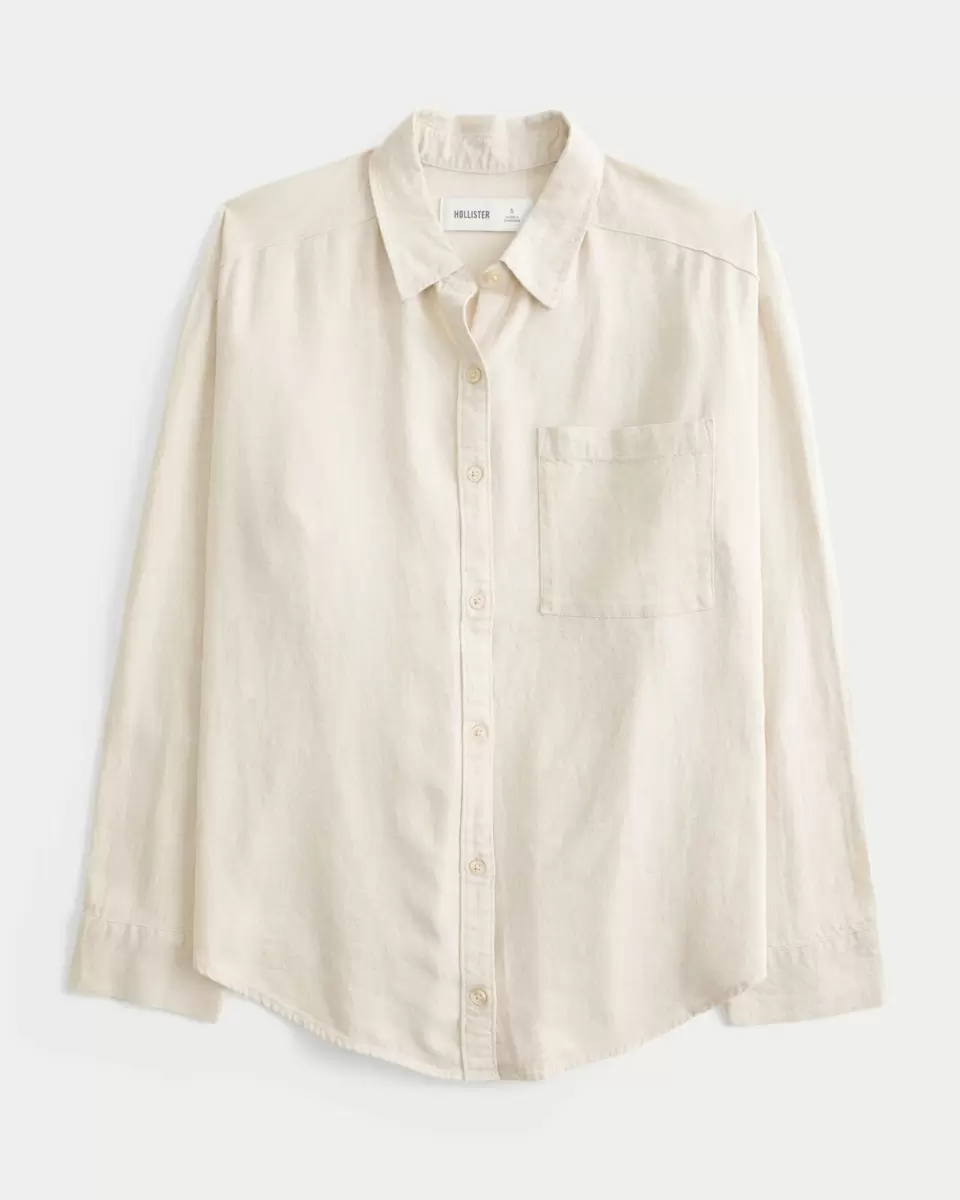 Votre nouvelle chemise préférée est confectionnée dans un mélange de lin doux et dotée d’une fermeture boutonnée et d’une poche poitrine gauche. Ourlet et col arrondis. Coupe oversize.