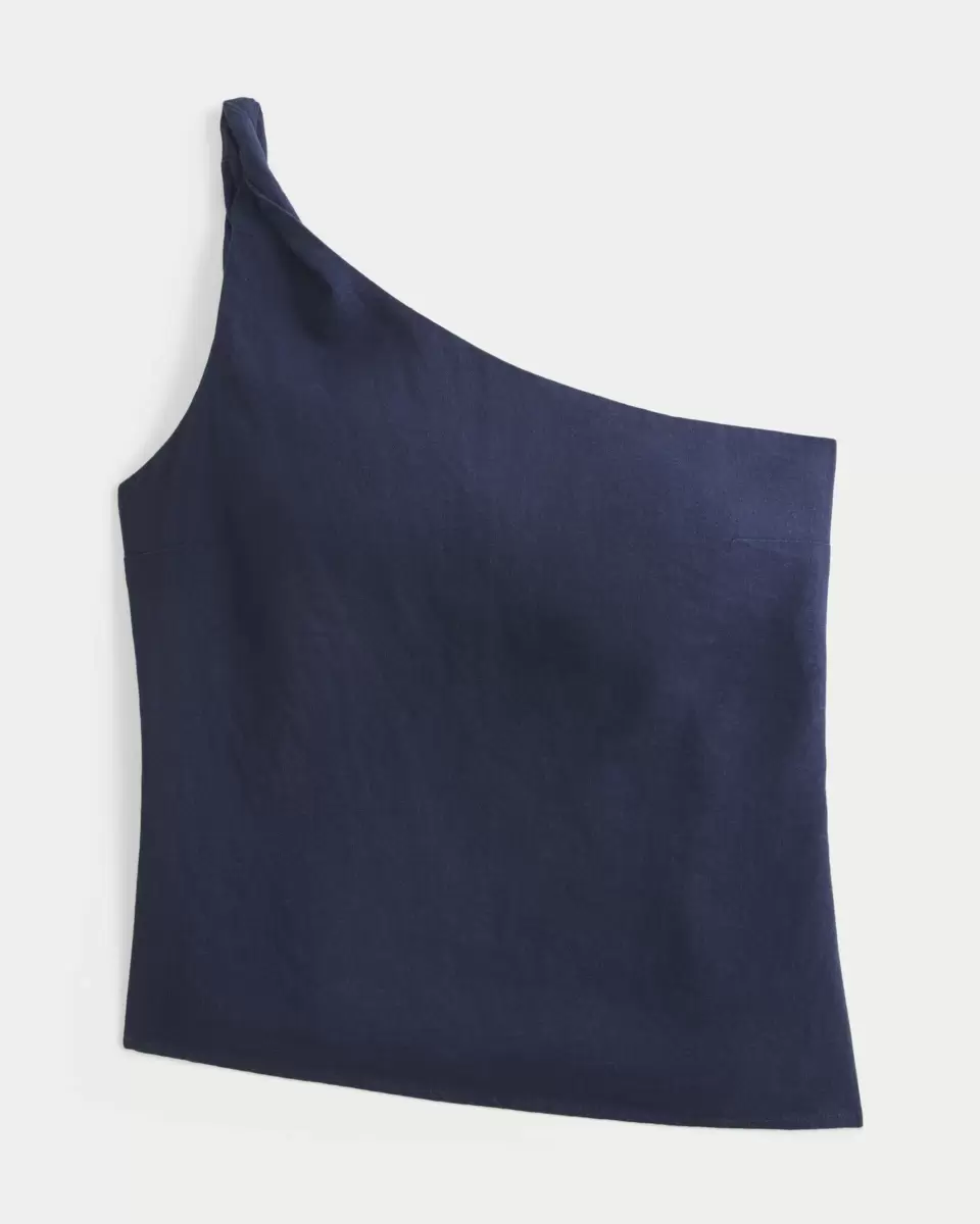 Un joli haut en mélange de lin doux, conçu avec une silhouette asymétrique à une épaule. Détail torsadé sur la bretelle, ourlet asymétrique. Importé.