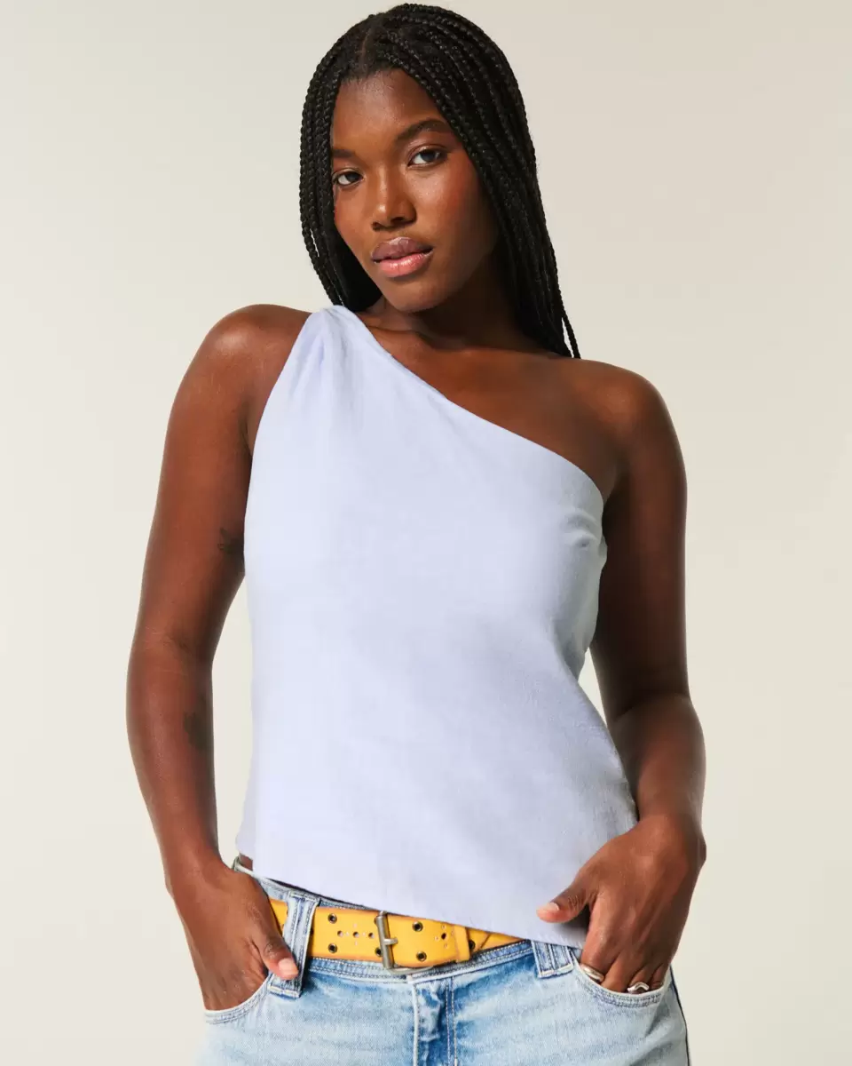 Un joli haut en mélange de lin doux, conçu avec une silhouette asymétrique à une épaule. Détail torsadé sur la bretelle, ourlet asymétrique. Importé.