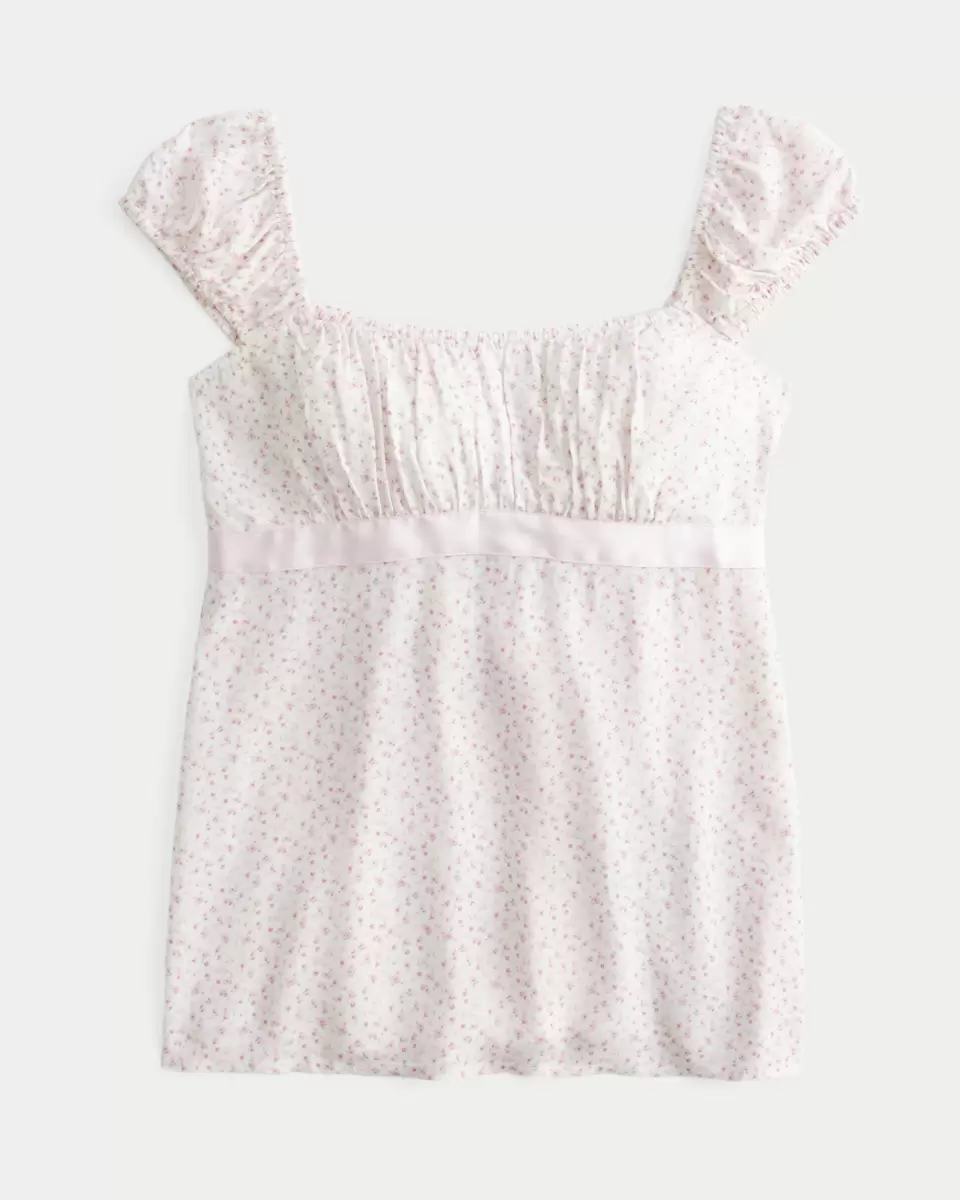 Haut babydoll fluide et ultra doux, orné d’un joli lien en satin. Buste froncé et dos smocké. Coupe facile. Importé.